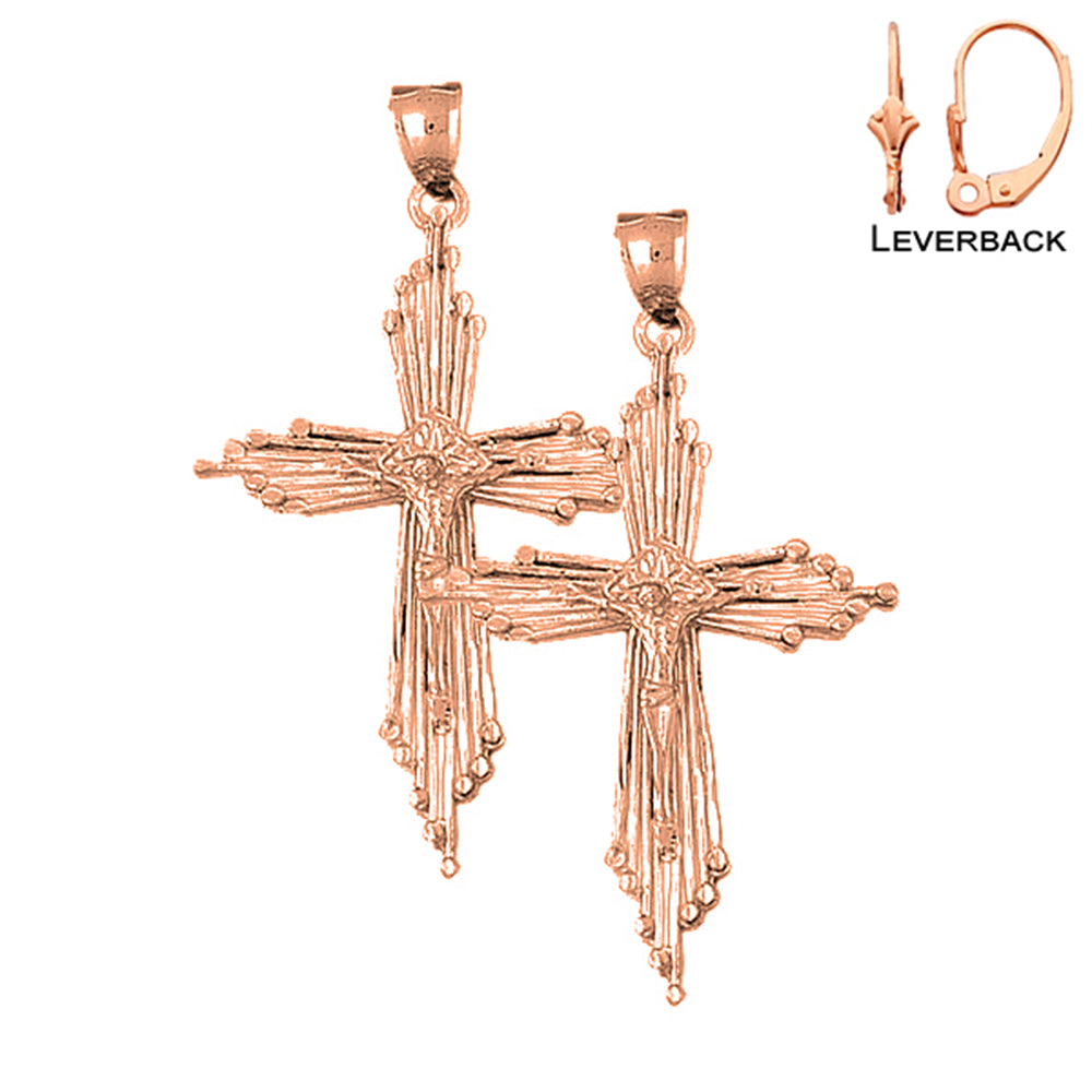 This is a gorgeous 14k yellow gold 58mm crucifix earrings. This 14k yellow gold earrings measures 58 mm in length by 35 mm width. JewelsObsession creates all gold jewelry in our state of the art manufacturing facility.