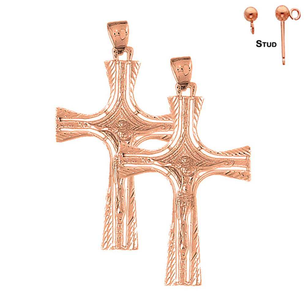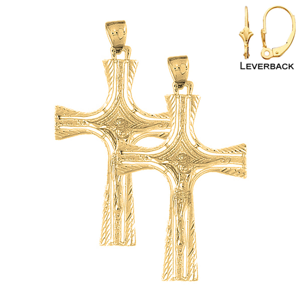 14K or 18K Gold 59mm Latin Crucifix Earrings
