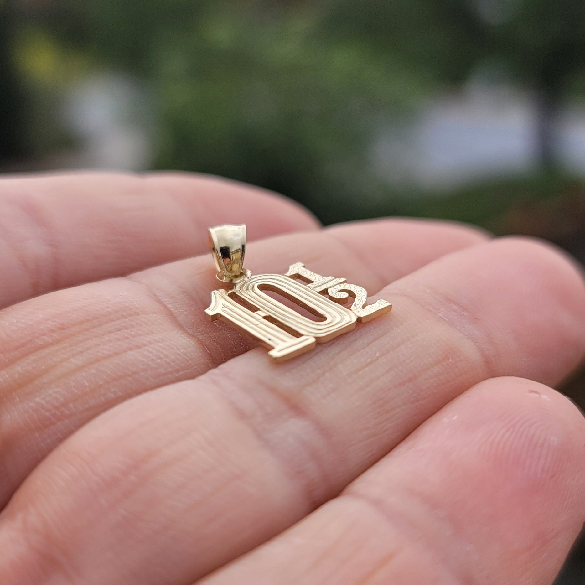 This gorgeous 14K or 18K gold 10 1/2, ten and a half pendant. This 14K or 18K gold pendant measures 19 mm in length by 15 mm in width. Measurement includes bale. JewelsObsession creates all gold jewelry in our state of the art manufacturing facility.