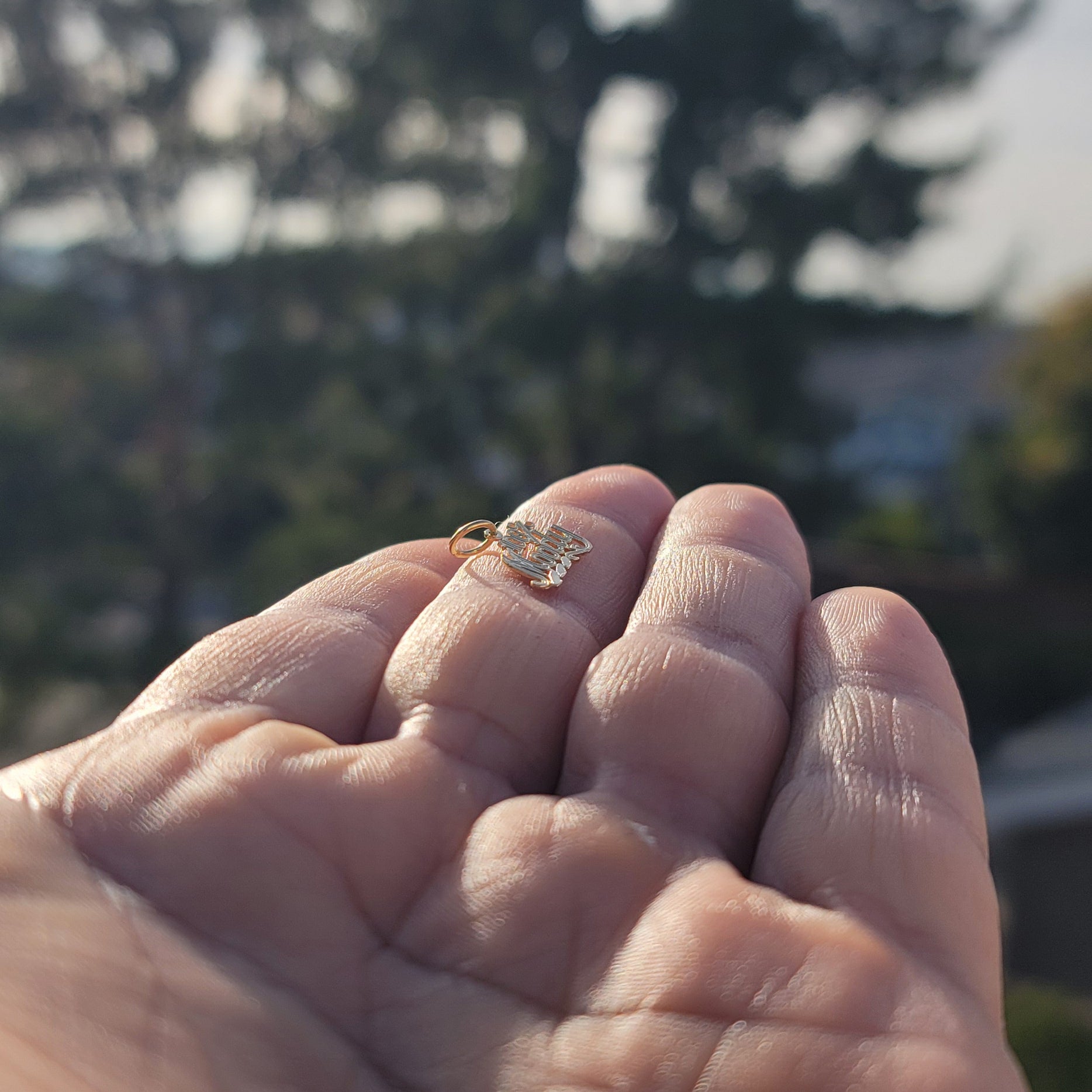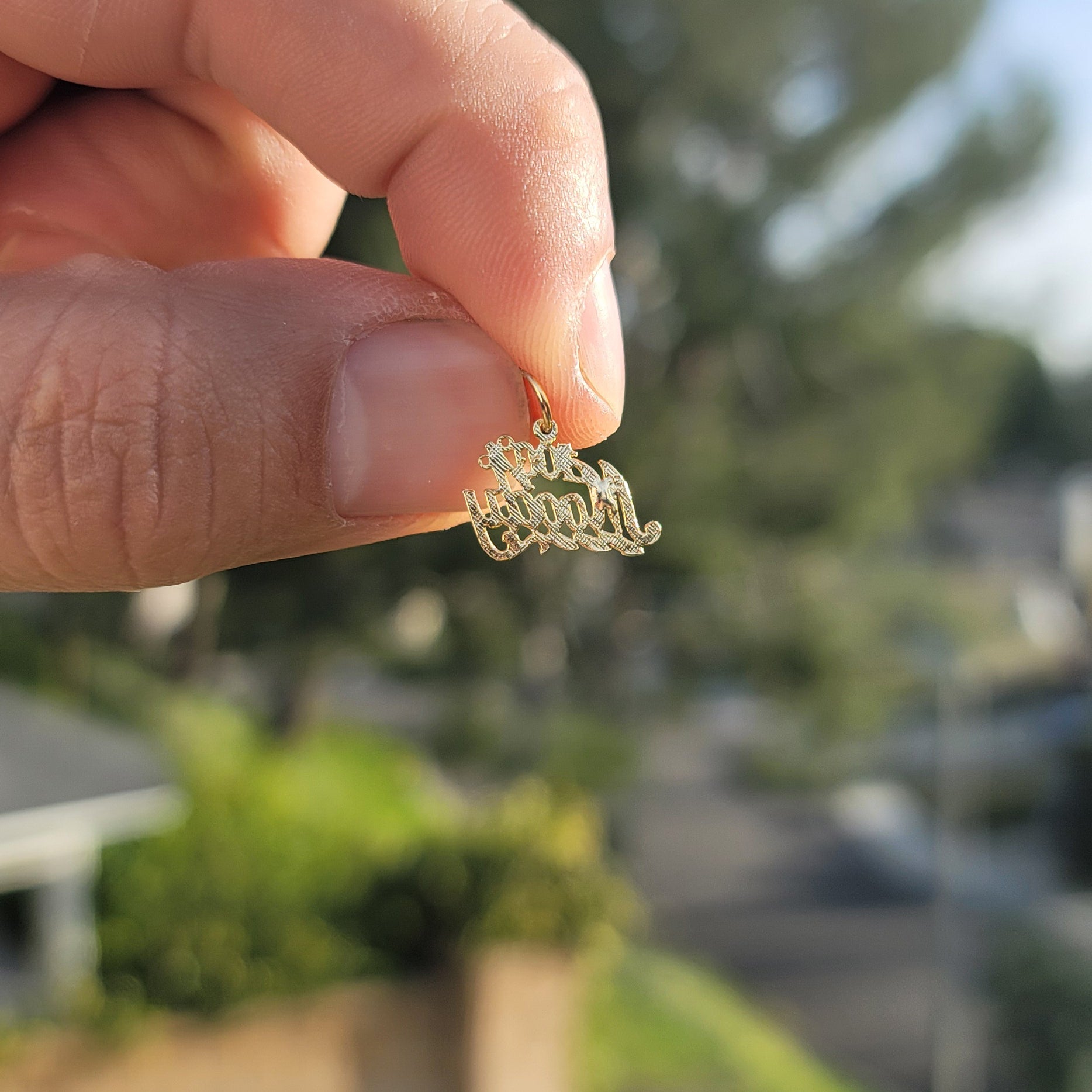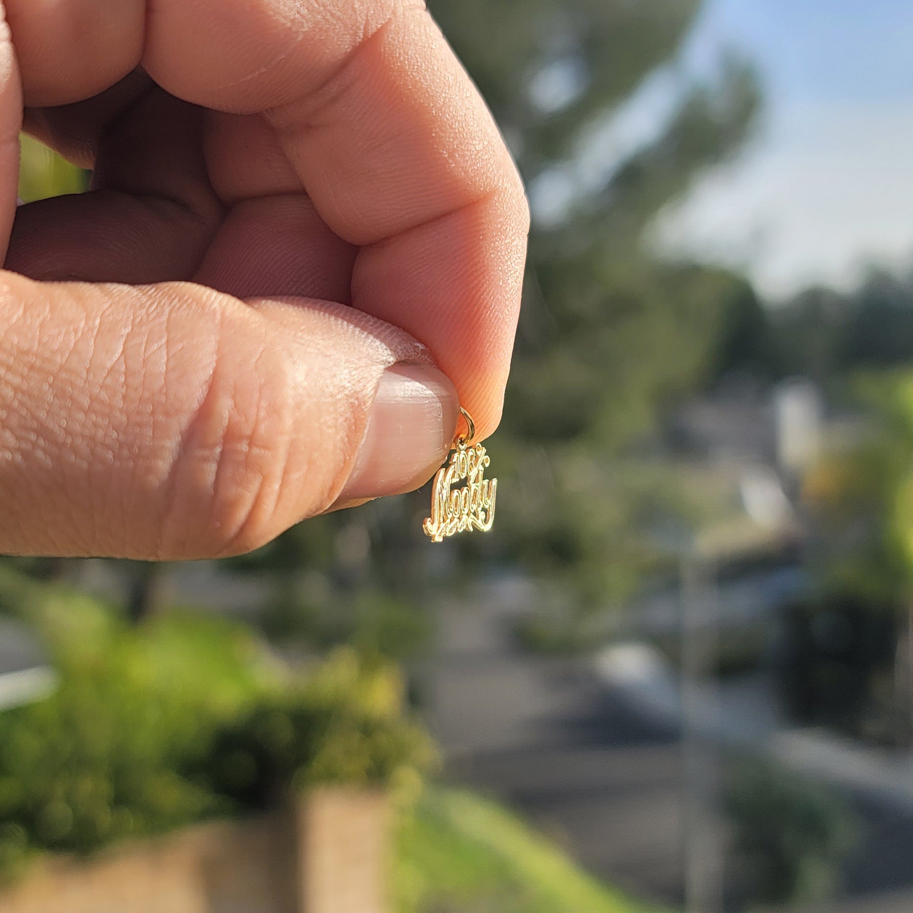 This gorgeous 14K or 18K gold saying pendant. This 14K or 18K gold pendant measures in length by in width. Measurement includes bale. JewelsObsession creates all gold jewelry in our state of the art manufacturing facility.