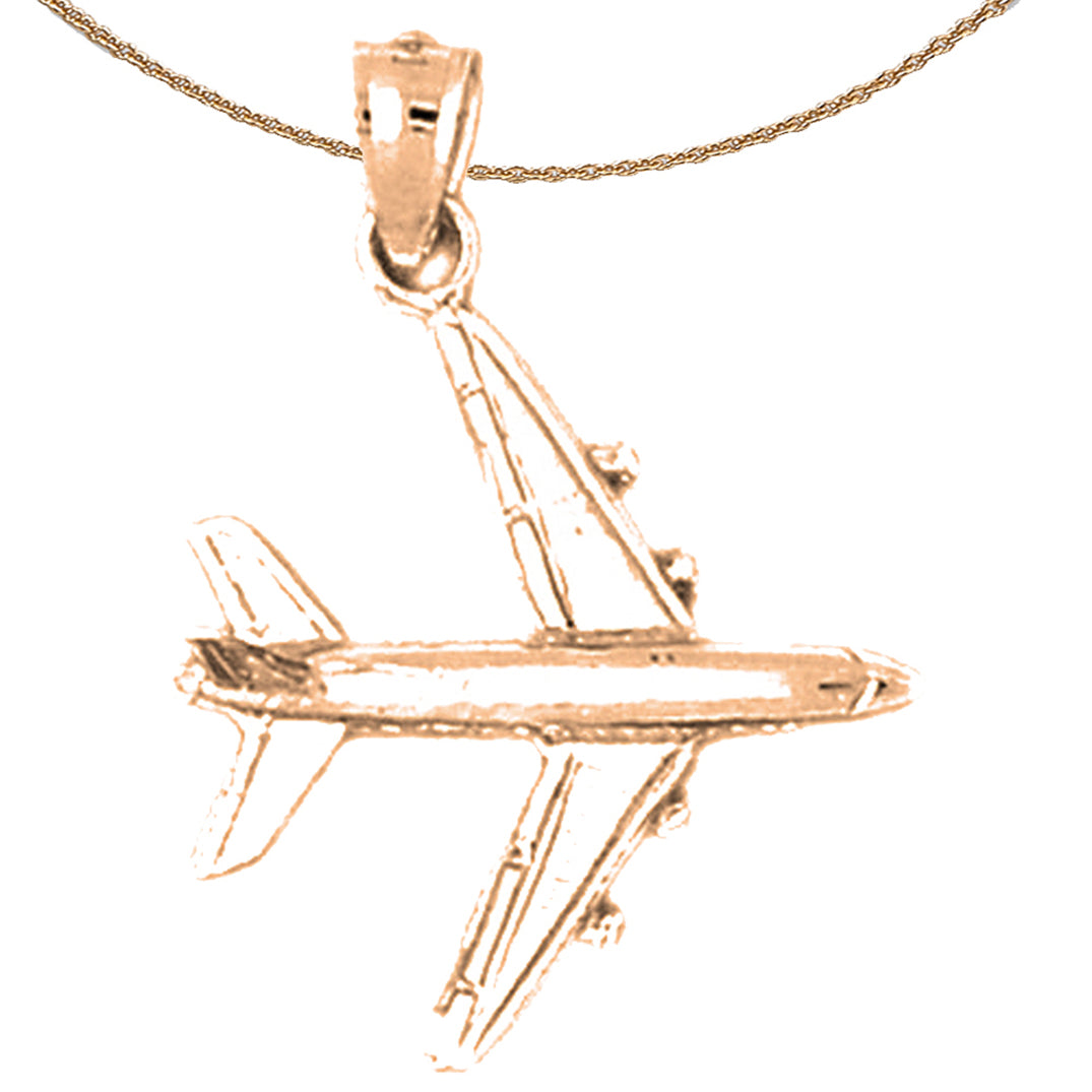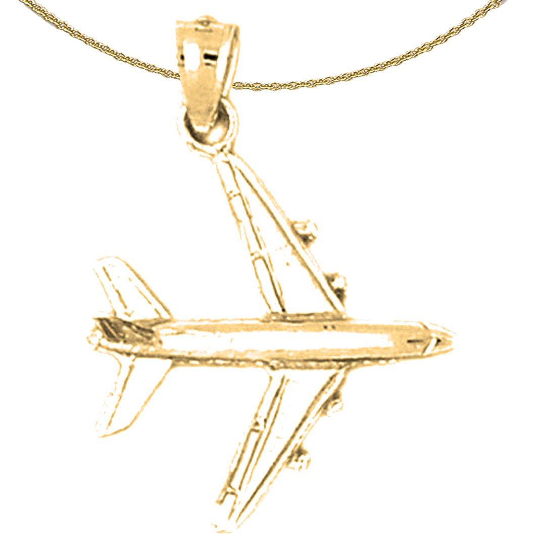 This gorgeous 10K, 14K or 18K gold 3-d airplane pendant. This 10K, 14K or 18K gold pendant measures 29 mm in length by 21 mm in width. Measurement includes bale. JewelsObsession creates all gold jewelry in our state of the art manufacturing facility.