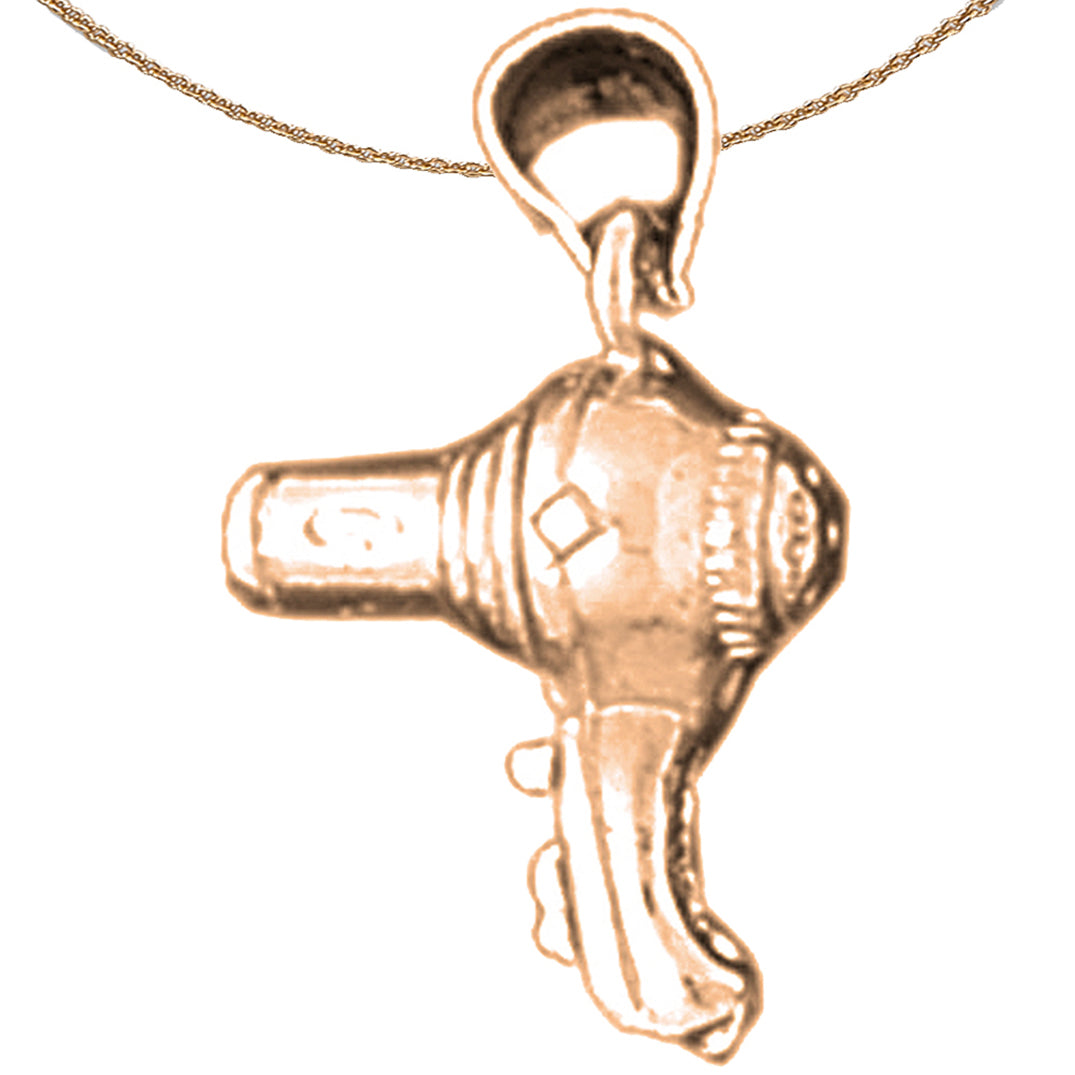 10K, 14K or 18K Gold 3D Blow Dryer Pendant