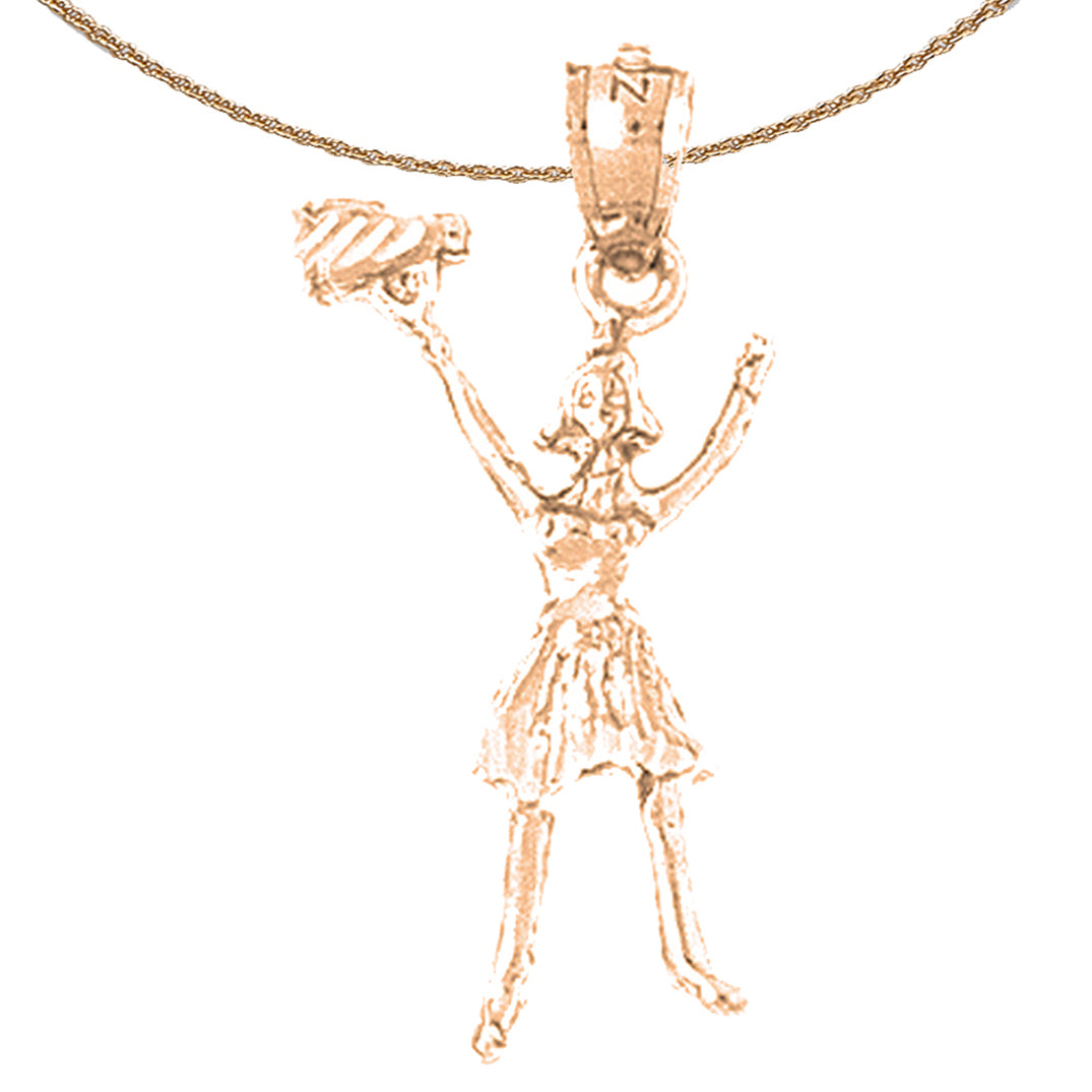 This is a stunning 14K or 18K gold 3-d cheerleader pendant. This 14K or 18K gold pendant measures 29 mm in length by 14 mm in width. Measurement includes bale. JewelsObsession creates all gold jewelry in our state of the art manufacturing facility.