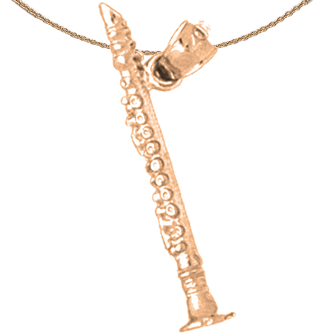 14K or 18K Gold 3D Clarinet Pendant