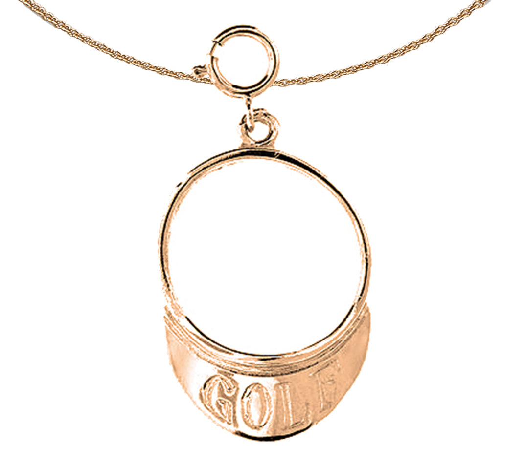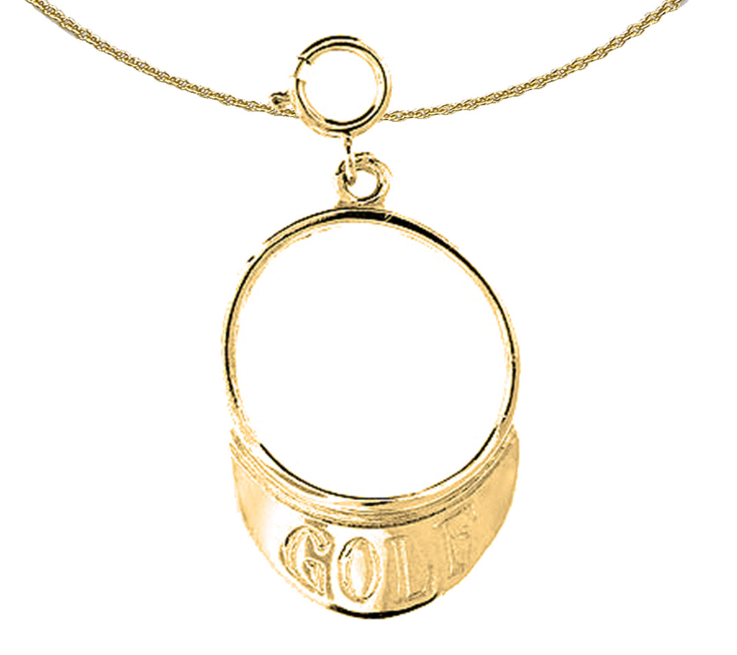 This is an elegant 14K or 18K gold 3-d golf visor pendant. This 14K or 18K gold pendant measures 29 mm in length by 16 mm in width. Measurement includes bale. JewelsObsession creates all gold jewelry in our state of the art manufacturing facility.