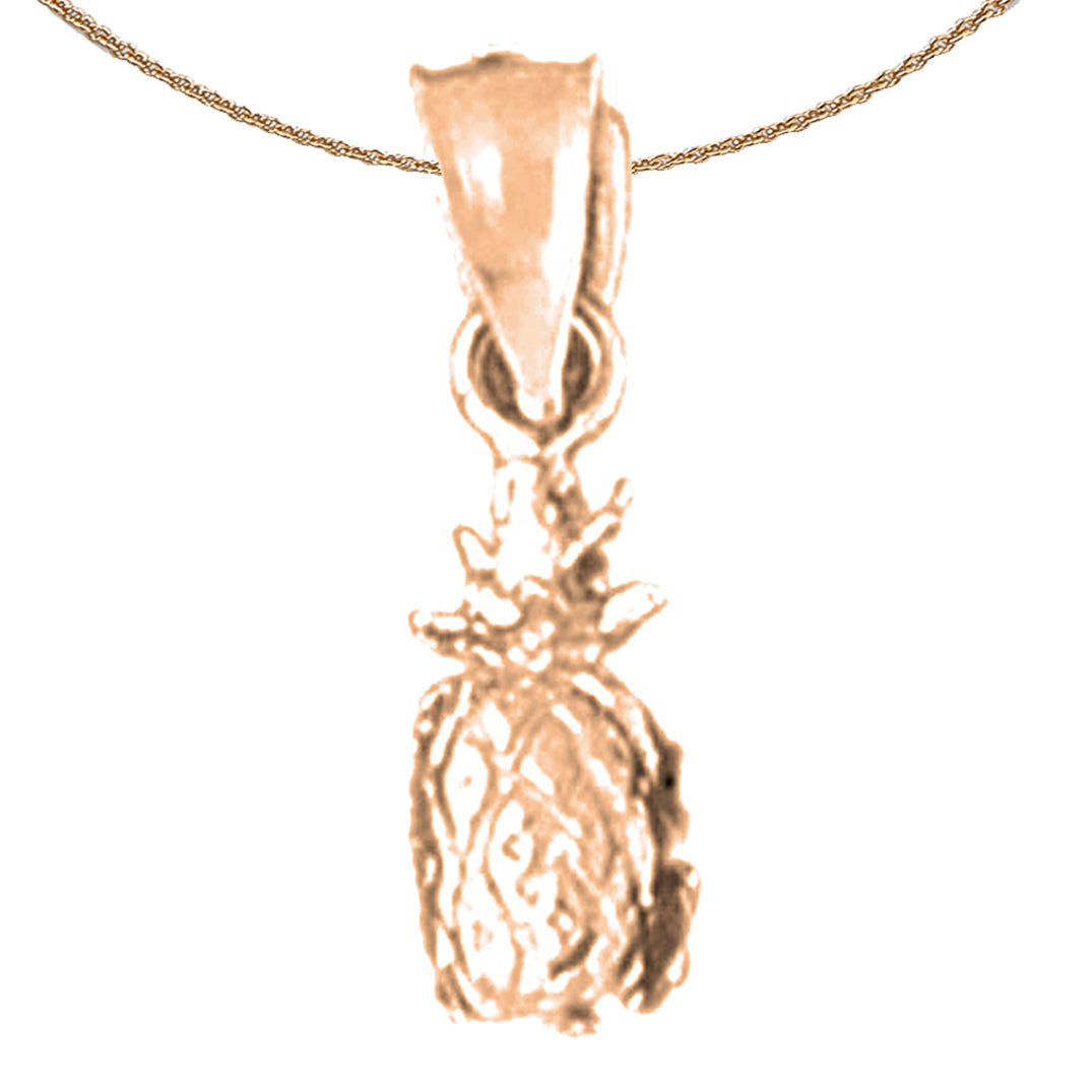 This gorgeous 14K or 18K gold 3-d pineapple pendant. This 14K or 18K gold pendant measures 17 mm in length by 5 mm in width. Measurement includes bale. JewelsObsession creates all gold jewelry in our state of the art manufacturing facility.