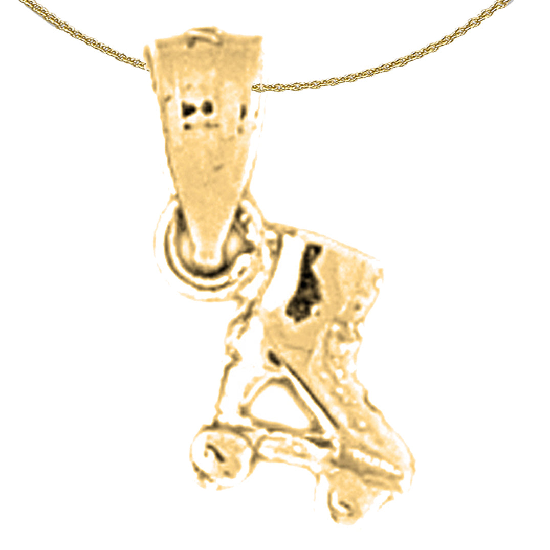This is a beautiful 14K or 18K gold 3-d roller skates pendant. This 14K or 18K gold pendant measures 15 mm in length by 8 mm in width. Measurement includes bale. JewelsObsession creates all gold jewelry in our state of the art manufacturing facility.