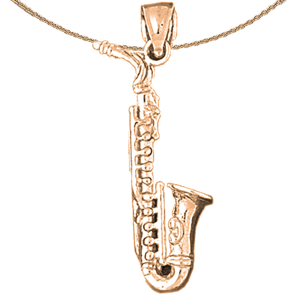 10K, 14K or 18K Gold 3D Saxophone Pendant