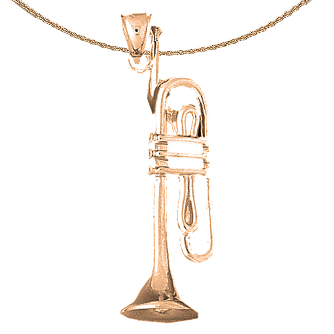 10K, 14K or 18K Gold 3D Trumpet Pendant