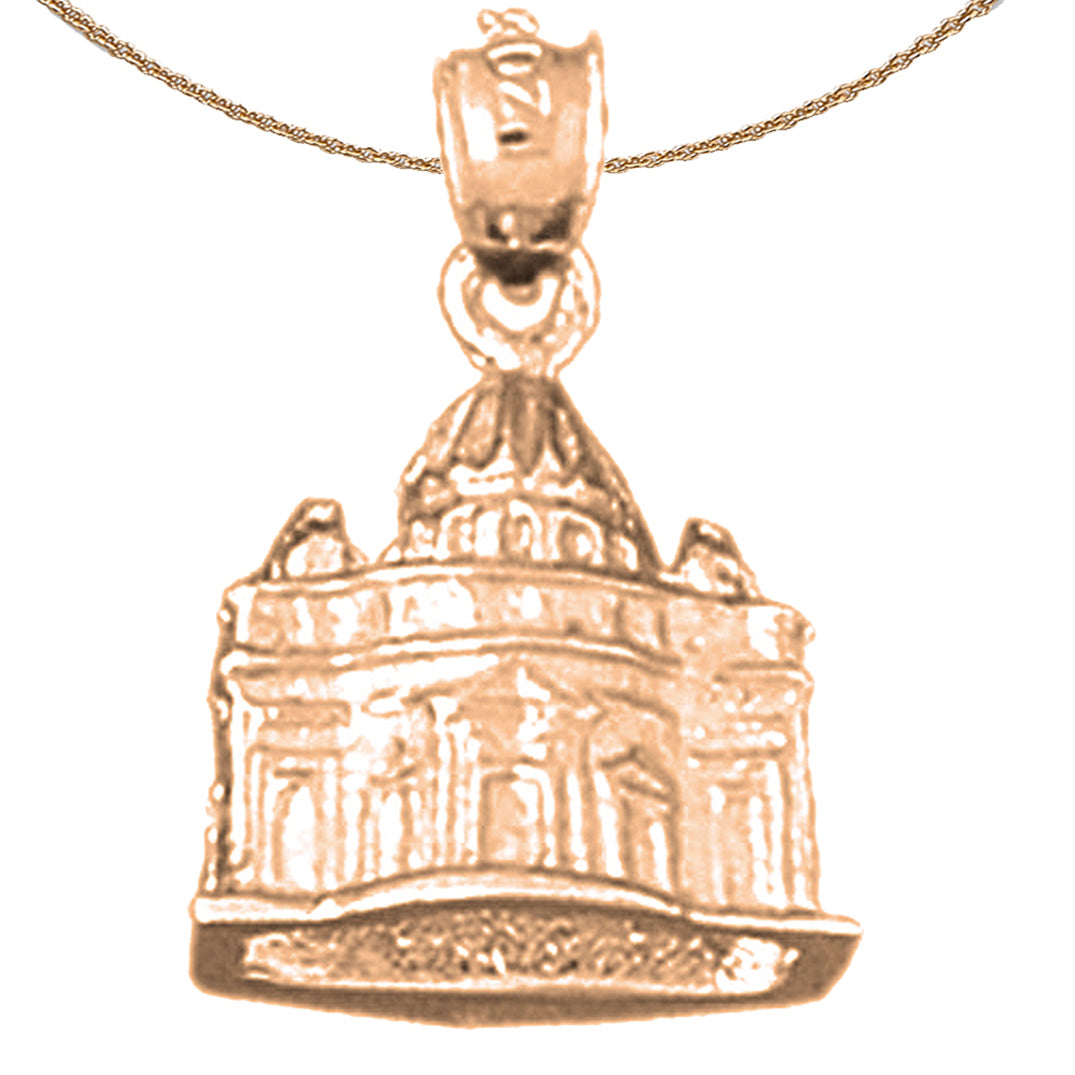 This is a stunning 10K, 14K or 18K gold 3-d vatican pendant. This 10K, 14K or 18K gold pendant measures 20 mm in length by 14 mm in width. Measurement includes bale. JewelsObsession creates all gold jewelry in our state of the art manufacturing facility.