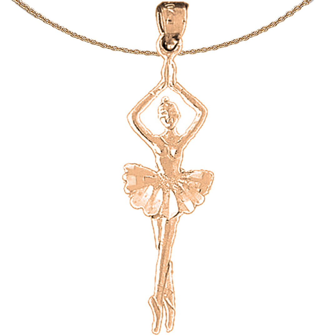 This is an elegant 14K or 18K gold ballerina pendant. This 14K or 18K gold pendant measures 41 mm in length by 11 mm in width. Measurement includes bale. JewelsObsession creates all gold jewelry in our state of the art manufacturing facility.