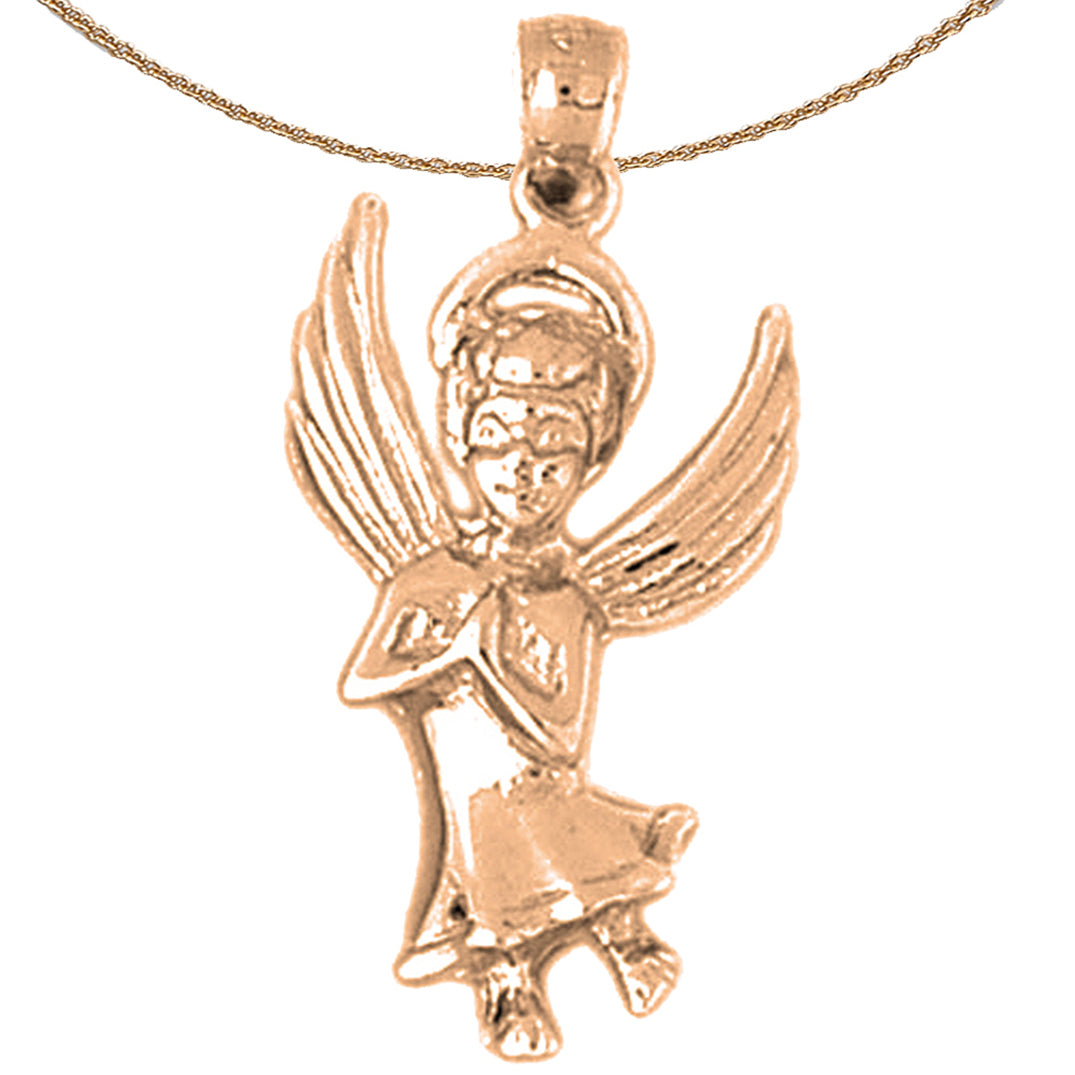 This is a beautiful 10K, 14K or 18K gold angel pendant. This 10K, 14K or 18K gold pendant measures 29 mm in length by 15 mm in width. Measurement includes bale. JewelsObsession creates all gold jewelry in our state of the art manufacturing facility.