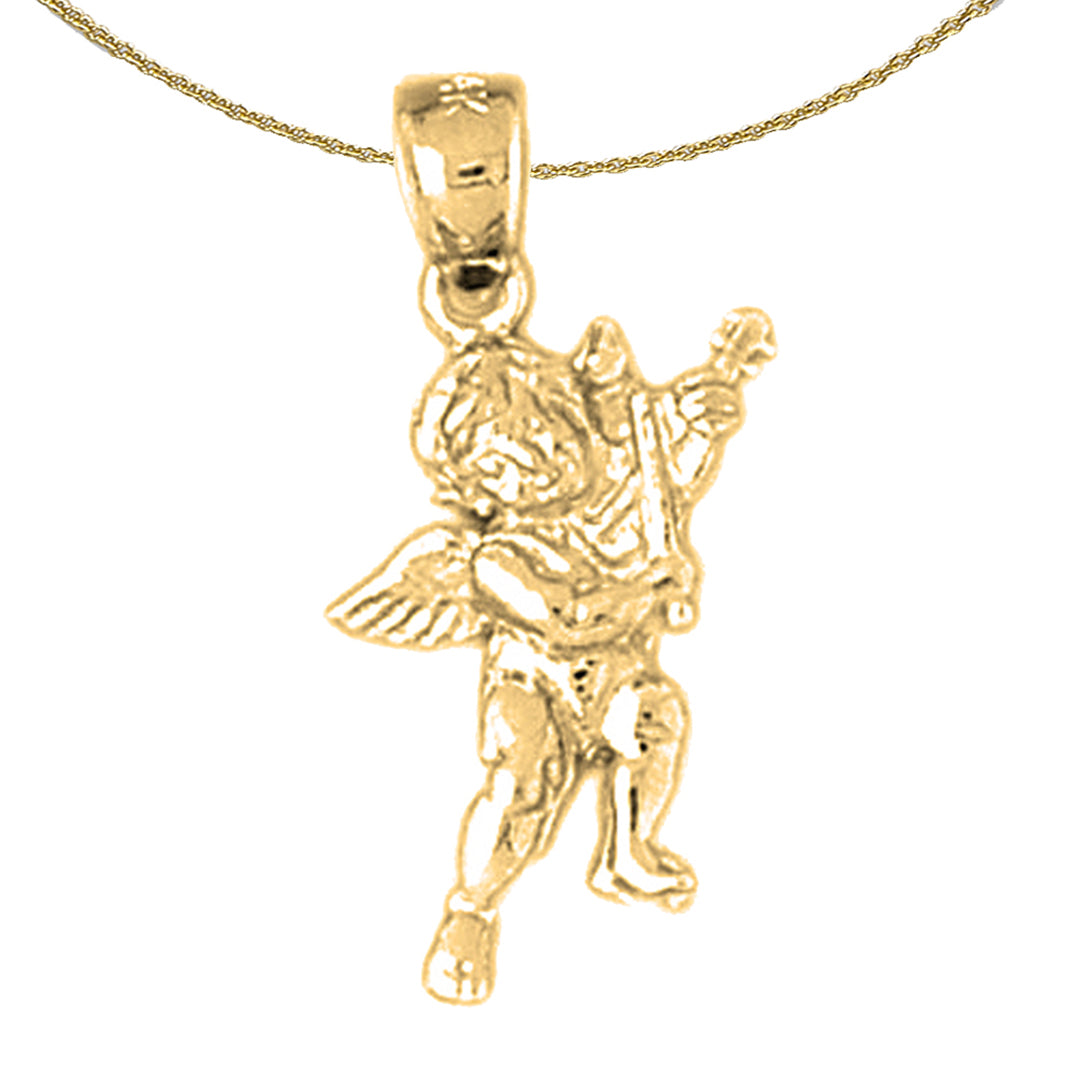 This is a beautiful 10K, 14K or 18K gold angel pendant. This 10K, 14K or 18K gold pendant measures 25 mm in length by 13 mm in width. Measurement includes bale. JewelsObsession creates all gold jewelry in our state of the art manufacturing facility.