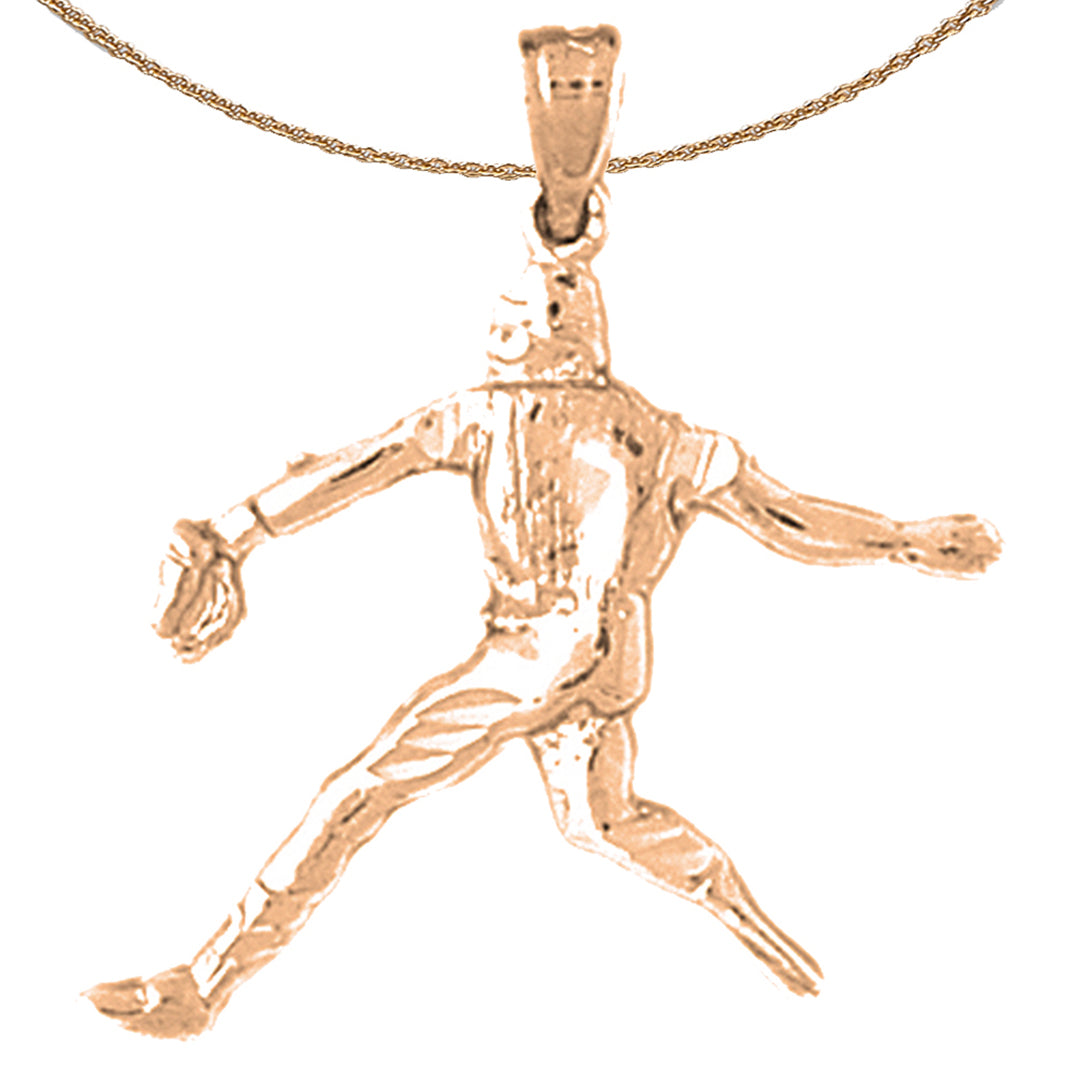 This gorgeous 14K or 18K gold baseball player pendant. This 14K or 18K gold pendant measures 29 mm in length by 26 mm in width. Measurement includes bale. JewelsObsession creates all gold jewelry in our state of the art manufacturing facility.