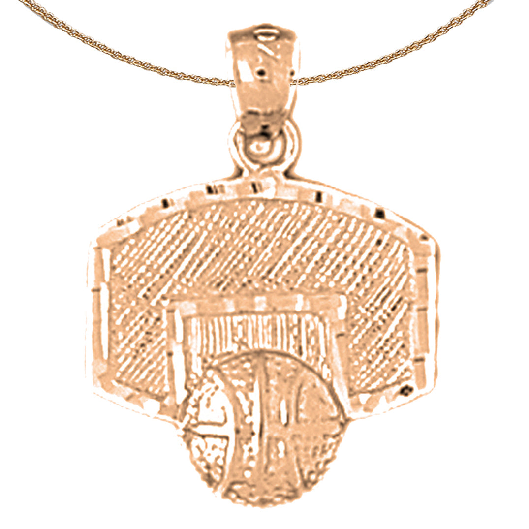 This gorgeous 14K or 18K gold basketball basket pendant. This 14K or 18K gold pendant measures 21 mm in length by 16 mm in width. Measurement includes bale. JewelsObsession creates all gold jewelry in our state of the art manufacturing facility.