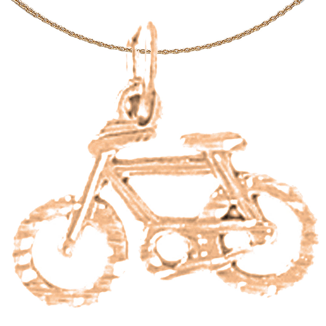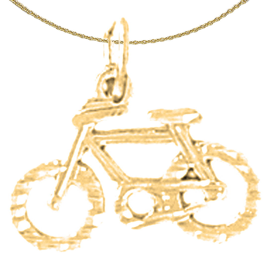 This is an elegant 14K or 18K gold bicycle pendant. This 14K or 18K gold pendant measures 14 mm in length by 15 mm in width. Measurement includes bale. JewelsObsession creates all gold jewelry in our state of the art manufacturing facility.