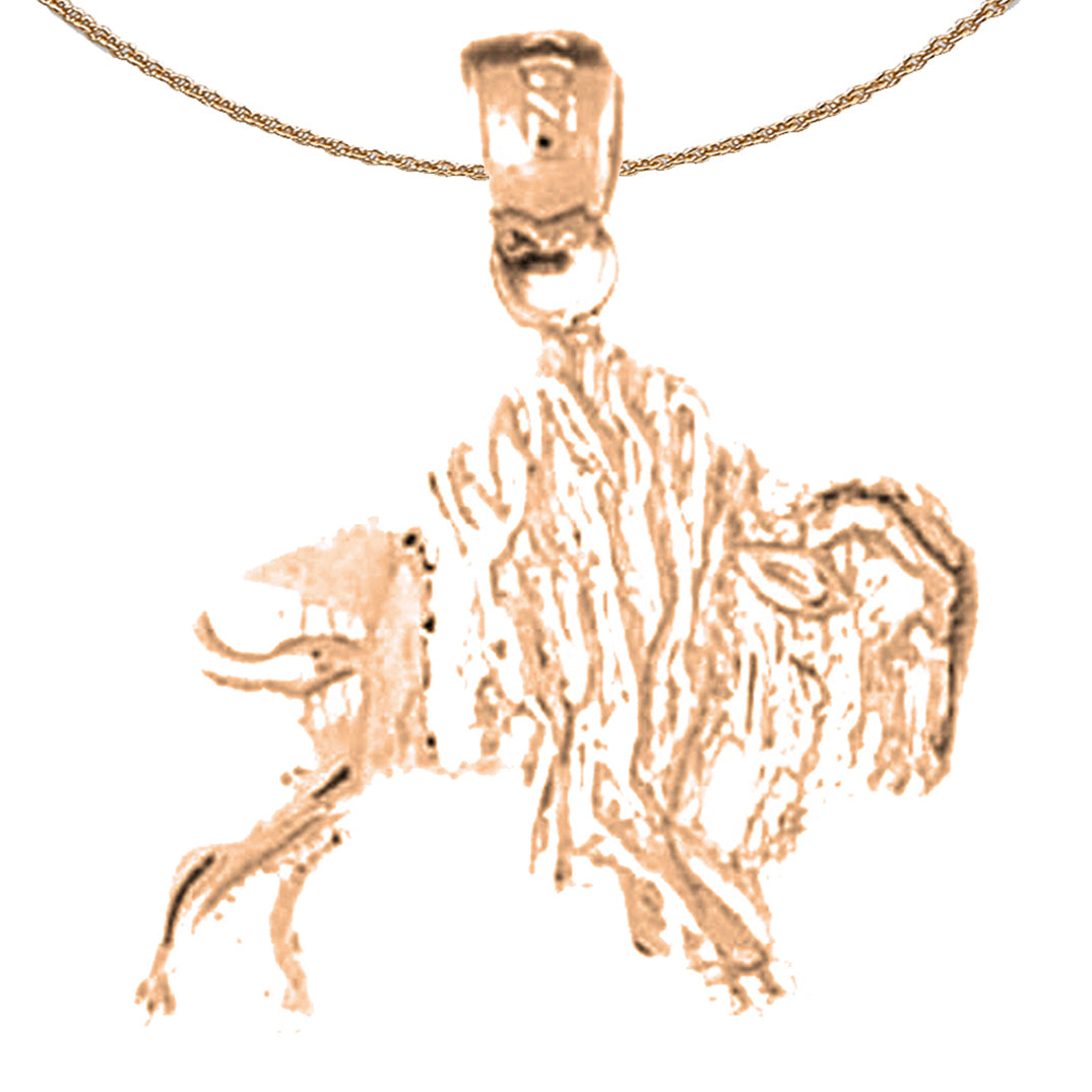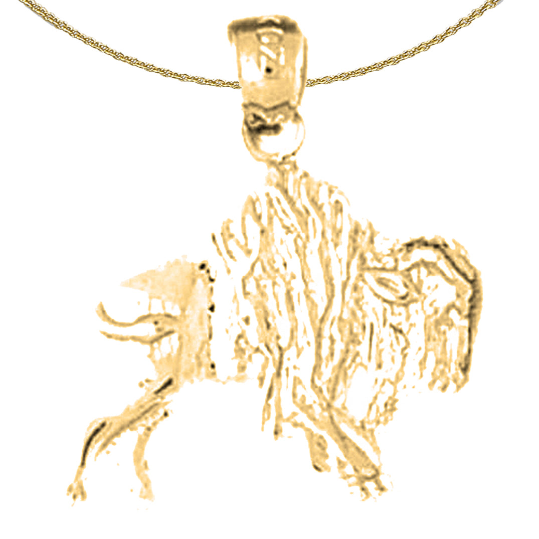 This gorgeous 14K or 18K gold bison pendant. This 14K or 18K gold pendant measures 21 mm in length by 18 mm in width. Measurement includes bale. JewelsObsession creates all gold jewelry in our state of the art manufacturing facility.