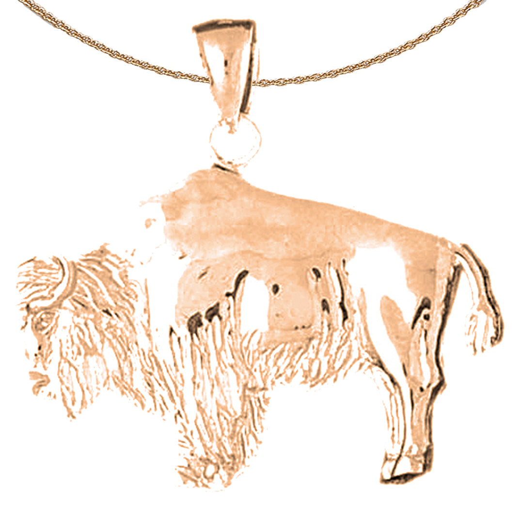This is an elegant 10K, 14K or 18K gold bison pendant. This 10K, 14K or 18K gold pendant measures 32 mm in length by 34 mm in width. Measurement includes bale. JewelsObsession creates all gold jewelry in our state of the art manufacturing facility.