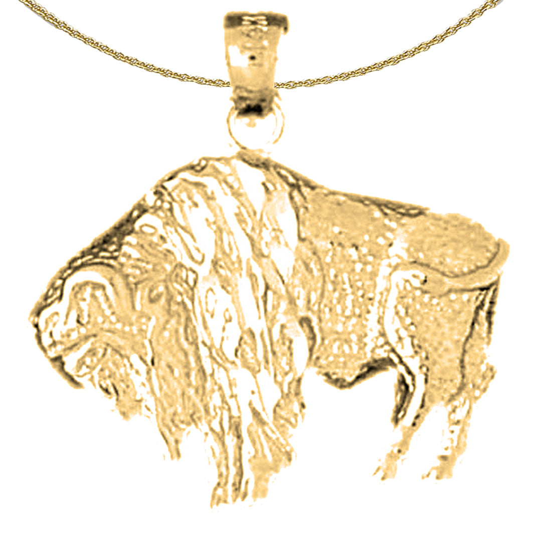 This is a beautiful 10K, 14K or 18K gold bison pendant. This 10K, 14K or 18K gold pendant measures 29 mm in length by 24 mm in width. Measurement includes bale. JewelsObsession creates all gold jewelry in our state of the art manufacturing facility.