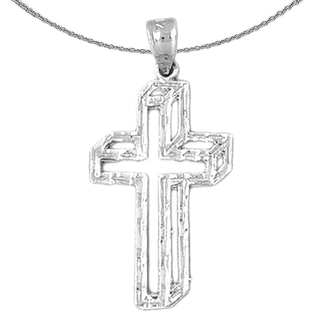 This gorgeous 14K or 18K gold cross pendant. This 14K or 18K gold pendant measures 30 mm in length by 16 mm in width. Measurement includes bale. JewelsObsession creates all gold jewelry in our state of the art manufacturing facility.