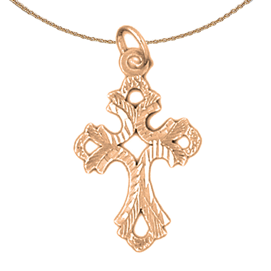 This gorgeous 14K or 18K gold cross pendant. This 14K or 18K gold pendant measures 27 mm in length by 15 mm in width. Measurement includes bale. JewelsObsession creates all gold jewelry in our state of the art manufacturing facility.