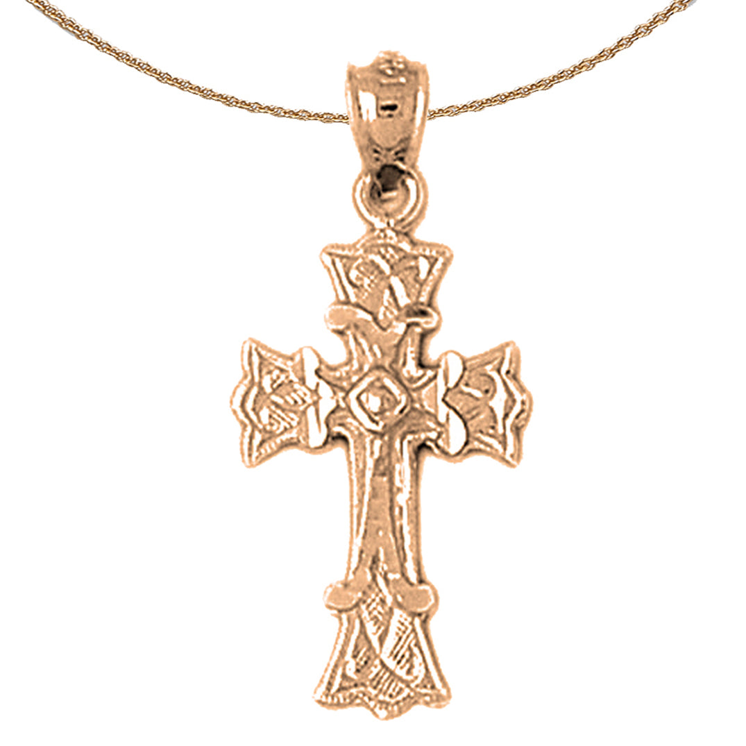 14K or 18K Gold Budded Cross Pendant
