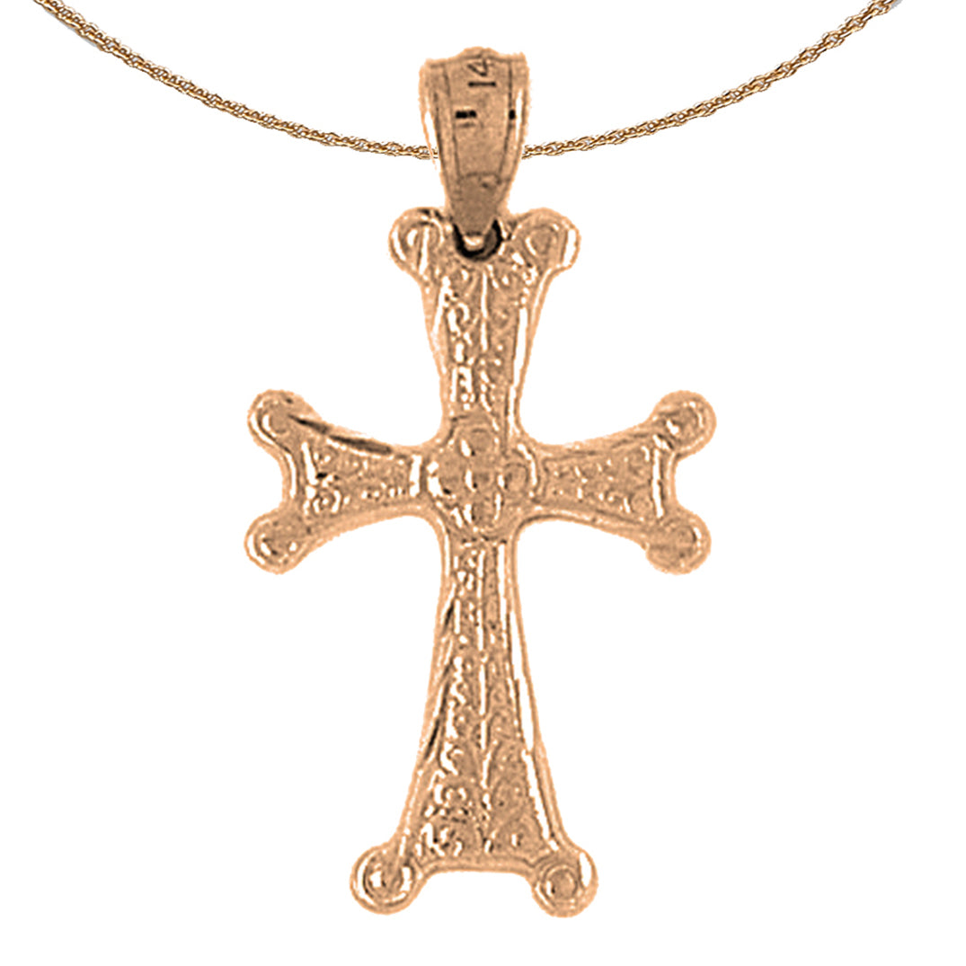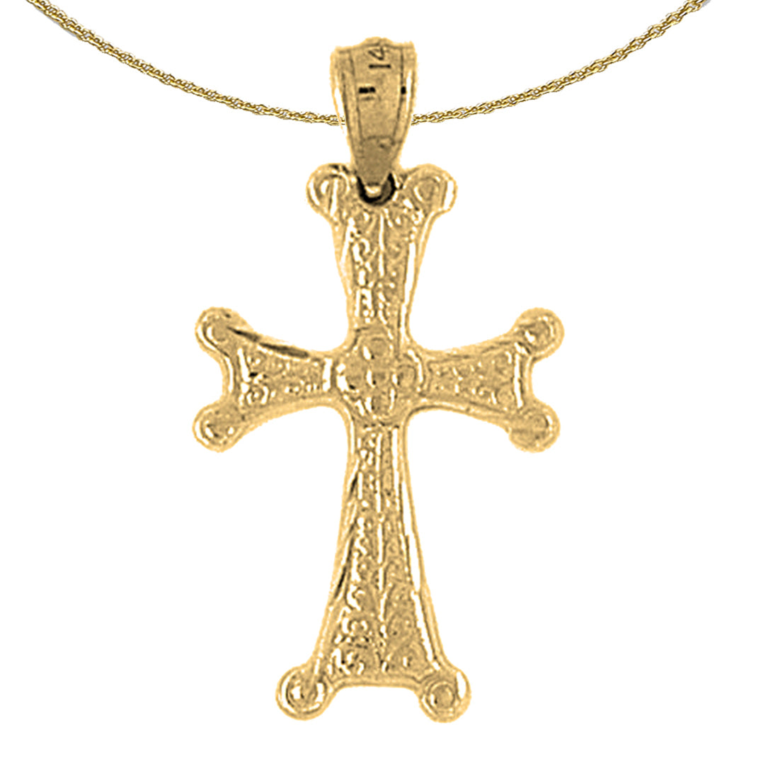 This is a stunning 14K or 18K gold cross pendant. This 14K or 18K gold pendant measures 30 mm in length by 16 mm in width. Measurement includes bale. JewelsObsession creates all gold jewelry in our state of the art manufacturing facility.