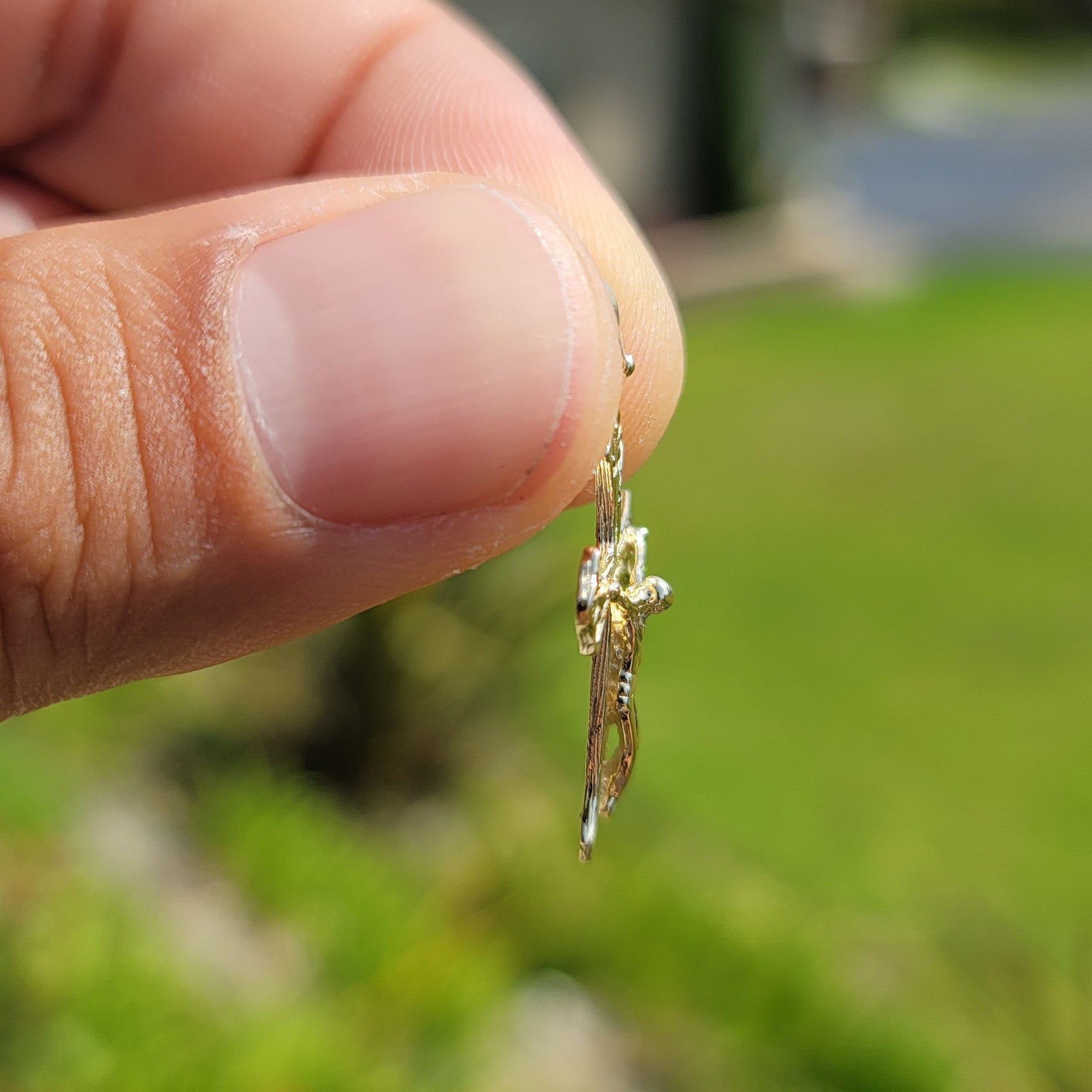 This is an elegant 10K, 14K or 18K gold crucifix pendant. This 10K, 14K or 18K gold pendant measures 33 mm in length by 18 mm in width. Measurement includes bale. JewelsObsession creates all gold jewelry in our state of the art manufacturing facility.