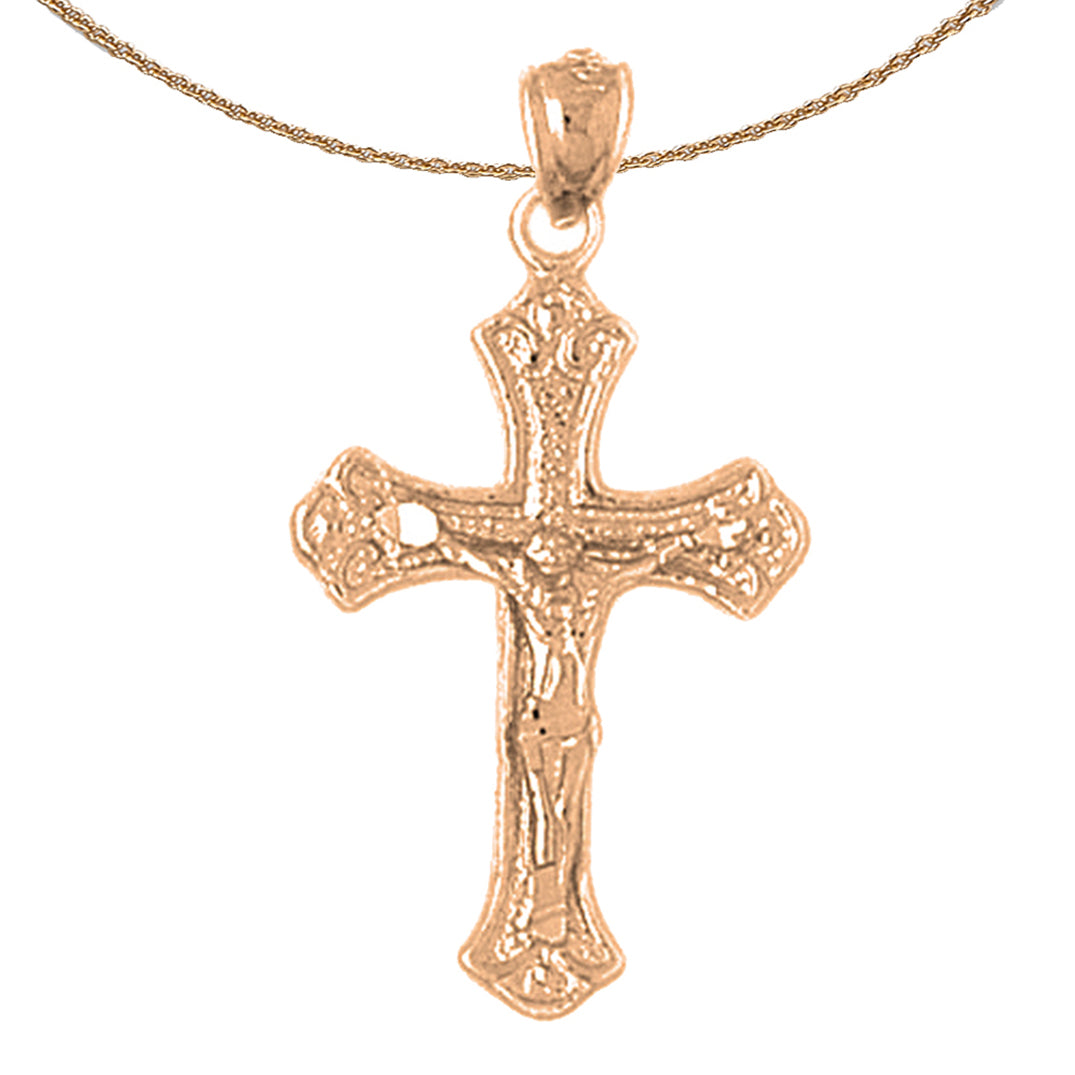 10K, 14K or 18K Gold Budded Crucifix Pendant