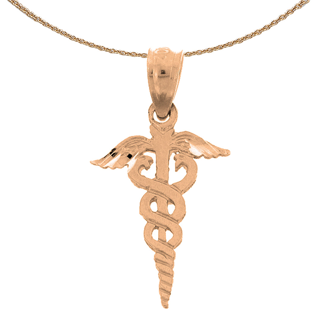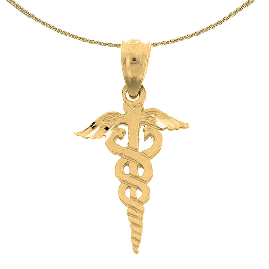 This is a stunning 14K or 18K gold cadeusus pendant. This 14K or 18K gold pendant measures 20 mm in length by 11 mm in width. Measurement includes bale. JewelsObsession creates all gold jewelry in our state of the art manufacturing facility.