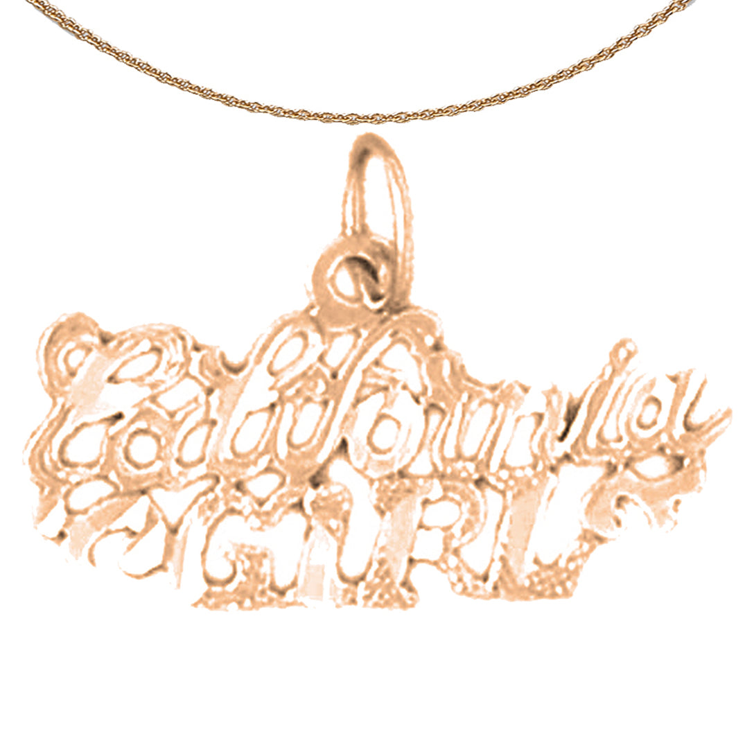 This gorgeous 14K or 18K gold california girl pendant. This 14K or 18K gold pendant measures 14 mm in length by 21 mm in width. Measurement includes bale. JewelsObsession creates all gold jewelry in our state of the art manufacturing facility.