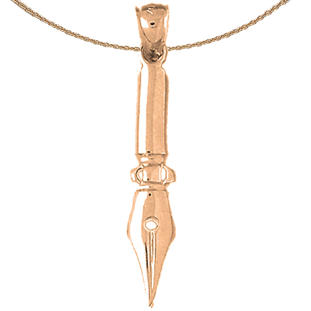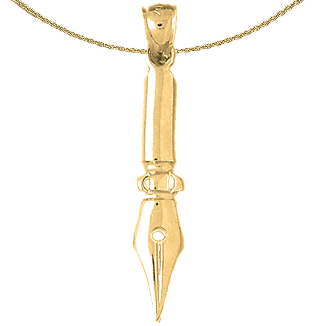 This is a beautiful 14K or 18K gold pen pendant. This 14K or 18K gold pendant measures 40 mm in length by 6 mm in width. Measurement includes bale. JewelsObsession creates all gold jewelry in our state of the art manufacturing facility.
