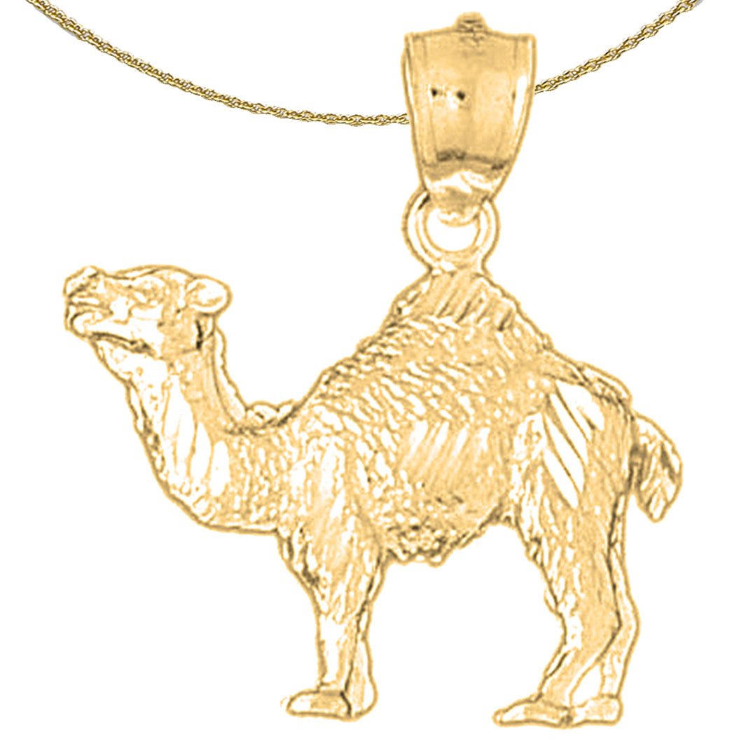 This is an elegant 10K, 14K or 18K gold camel pendant. This 10K, 14K or 18K gold pendant measures 29 mm in length by 25 mm in width. Measurement includes bale. JewelsObsession creates all gold jewelry in our state of the art manufacturing facility.