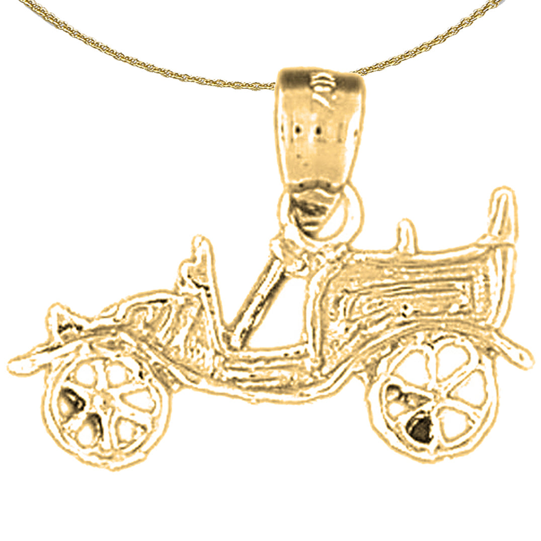 This is a beautiful 14K or 18K gold car pendant. This 14K or 18K gold pendant measures 16 mm in length by 23 mm in width. Measurement includes bale. JewelsObsession creates all gold jewelry in our state of the art manufacturing facility.