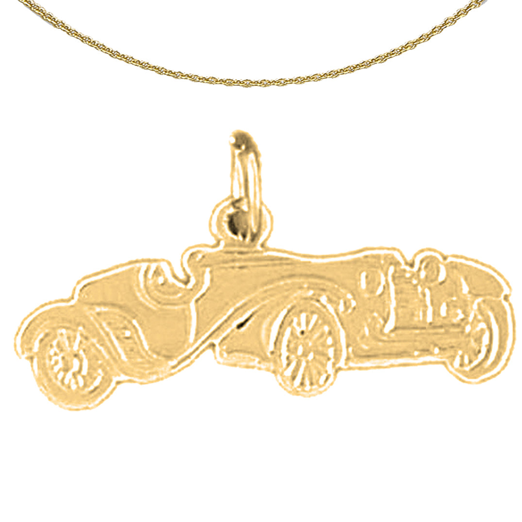 This is a beautiful 14K or 18K gold car pendant. This 14K or 18K gold pendant measures 11 mm in length by 23 mm in width. Measurement includes bale. JewelsObsession creates all gold jewelry in our state of the art manufacturing facility.