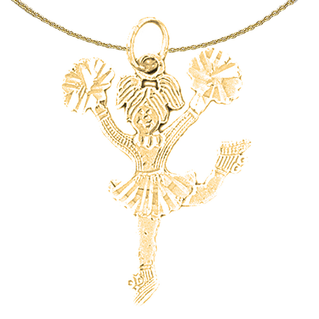 This is a beautiful 14K or 18K gold cheerleader pendant. This 14K or 18K gold pendant measures 28 mm in length by 19 mm in width. Measurement includes bale. JewelsObsession creates all gold jewelry in our state of the art manufacturing facility.