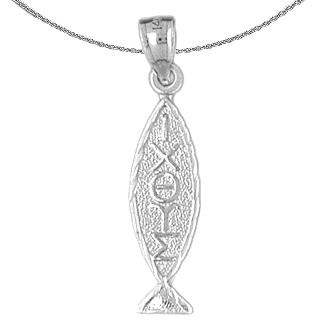 This gorgeous 14K or 18K gold christian fish with ixoye pendant. This 14K or 18K gold pendant measures 32 mm in length by 8 mm in width. Measurement includes bale. JewelsObsession creates all gold jewelry in our state of the art manufacturing facility.