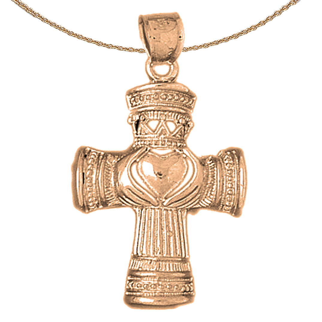 10K, 14K or 18K Gold Claddagh Cross Pendant