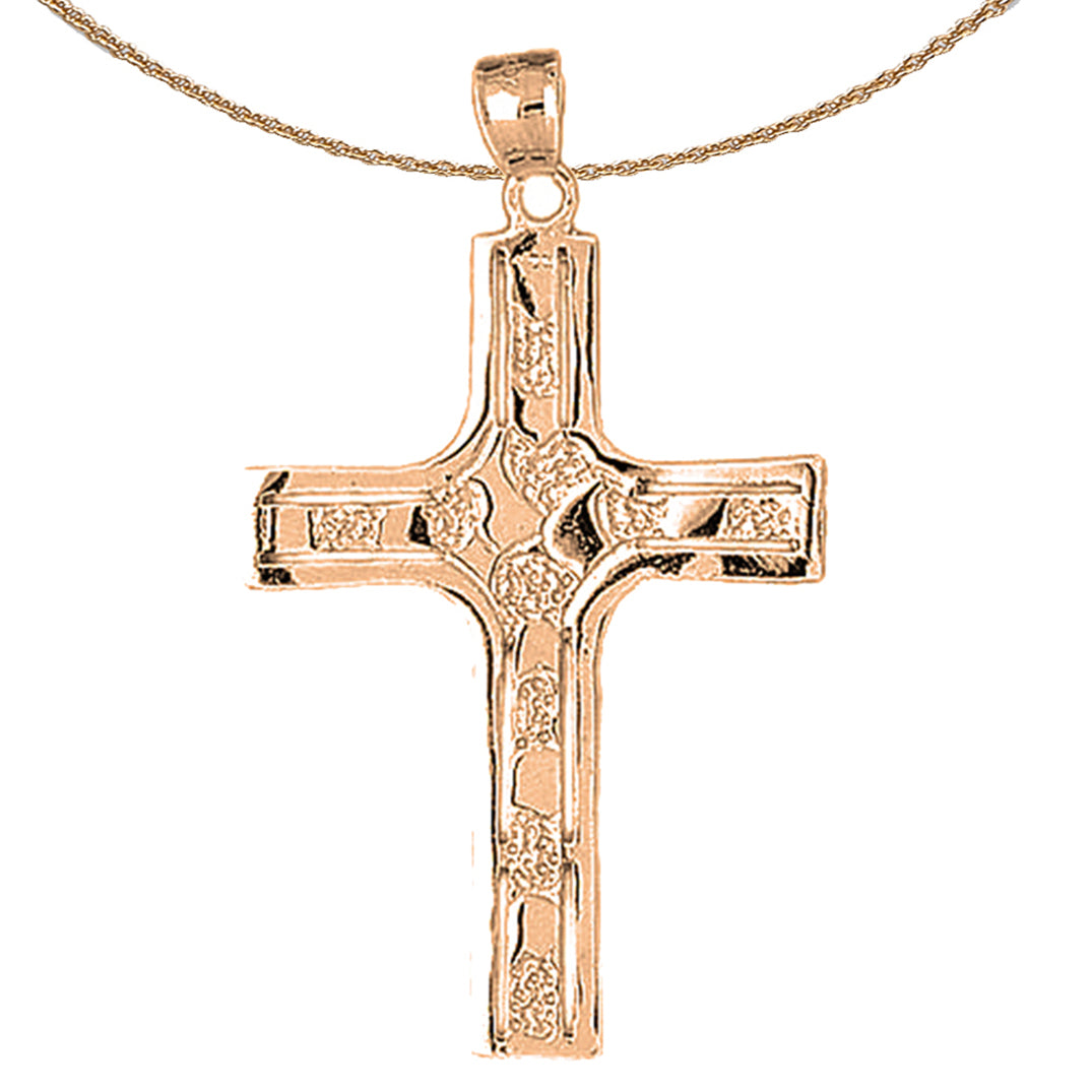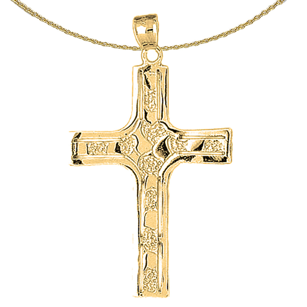 This gorgeous 10K, 14K or 18K gold cross pendant. This 10K, 14K or 18K gold pendant measures 61 mm in length by 36 mm in width. Measurement includes bale. JewelsObsession creates all gold jewelry in our state of the art manufacturing facility.