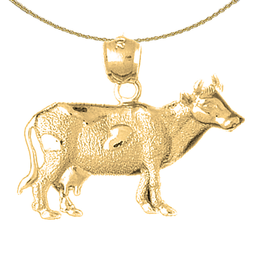 This is a stunning 10K, 14K or 18K gold cow pendant. This 10K, 14K or 18K gold pendant measures 24 mm in length by 29 mm in width. Measurement includes bale. JewelsObsession creates all gold jewelry in our state of the art manufacturing facility.