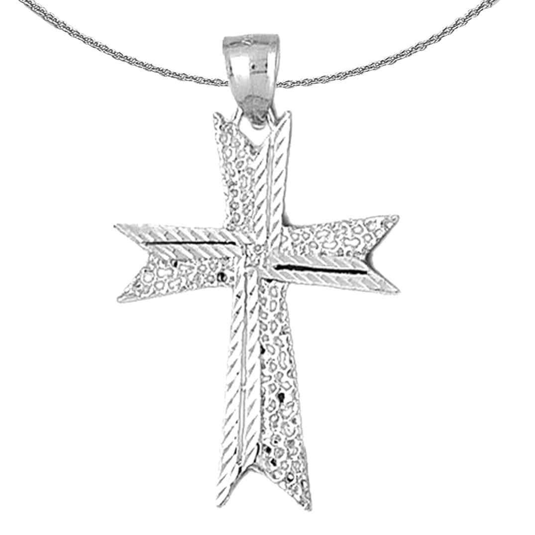 This is a beautiful 10K, 14K or 18K gold cross pendant. This 10K, 14K or 18K gold pendant measures 44 mm in length by 26 mm in width. Measurement includes bale. JewelsObsession creates all gold jewelry in our state of the art manufacturing facility.