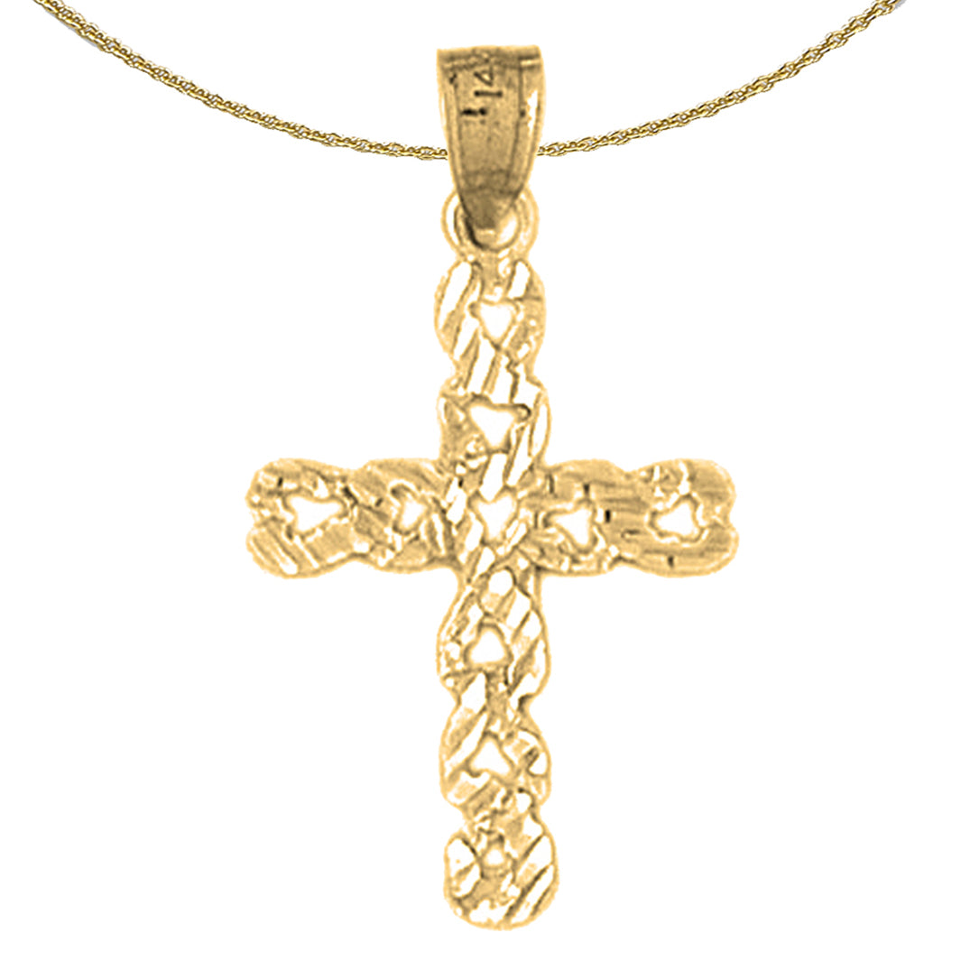 This gorgeous 14K or 18K gold cross pendant. This 14K or 18K gold pendant measures 31 mm in length by 17 mm in width. Measurement includes bale. JewelsObsession creates all gold jewelry in our state of the art manufacturing facility.