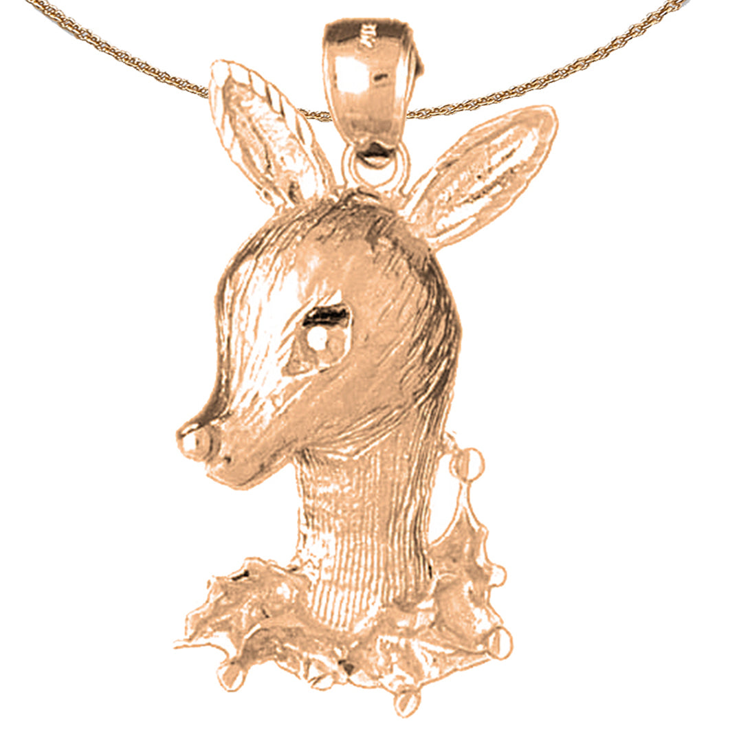 This is an elegant 10K, 14K or 18K gold deer pendant. This 10K, 14K or 18K gold pendant measures 43 mm in length by 23 mm in width. Measurement includes bale. JewelsObsession creates all gold jewelry in our state of the art manufacturing facility.