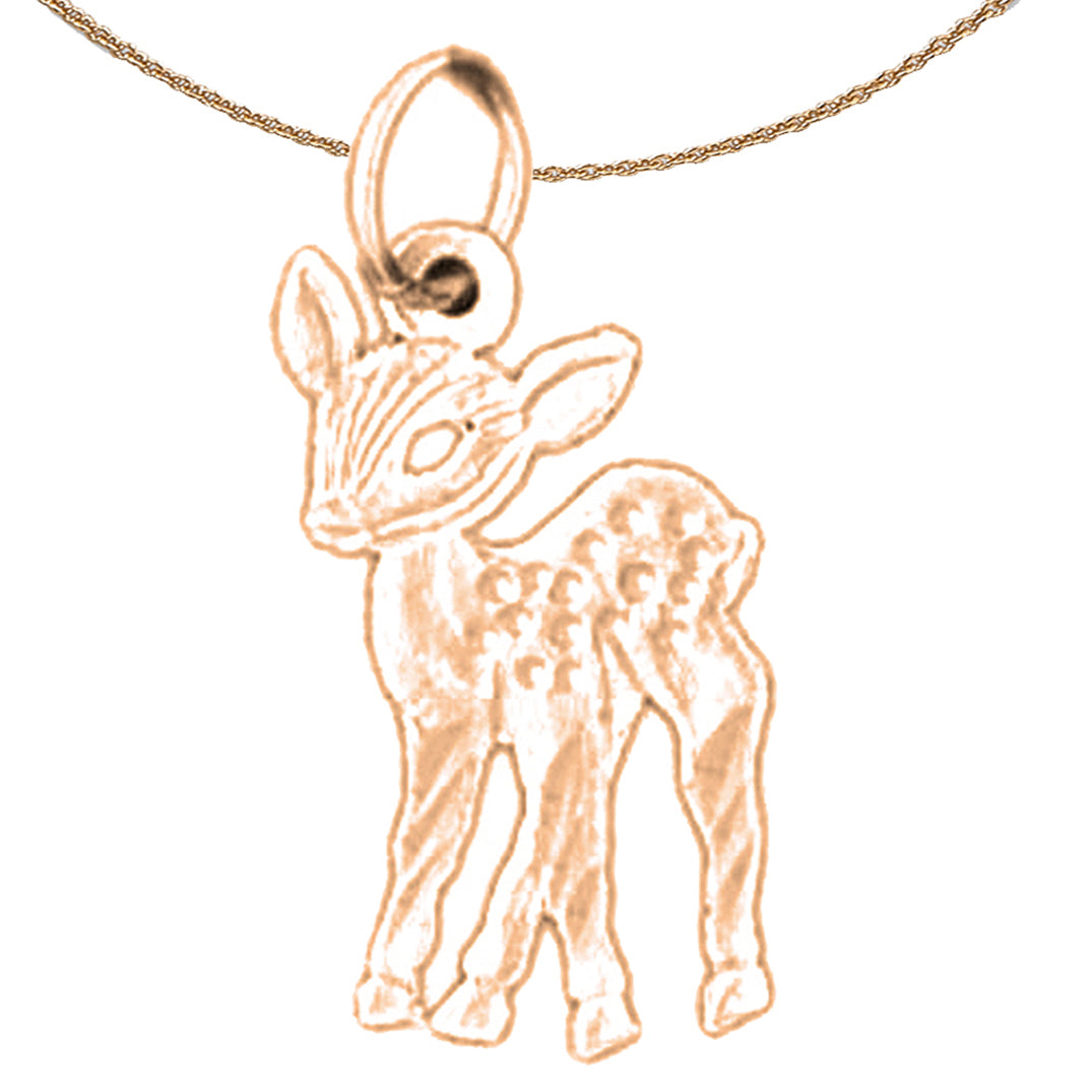 This is a beautiful 14K or 18K gold deer pendant. This 14K or 18K gold pendant measures 22 mm in length by 11 mm in width. Measurement includes bale. JewelsObsession creates all gold jewelry in our state of the art manufacturing facility.