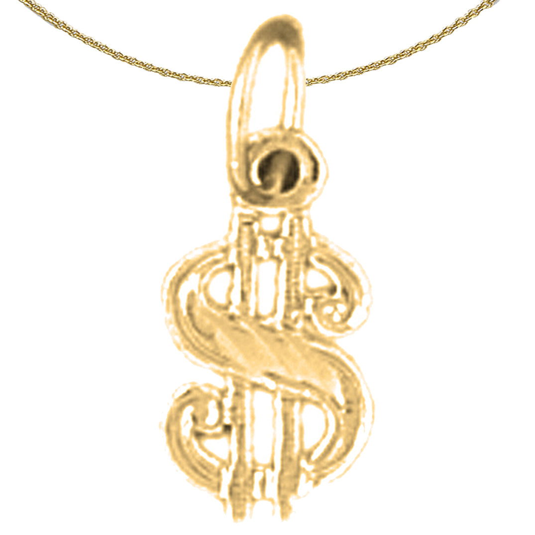 This is a stunning 14K or 18K gold dollar sign pendant. This 14K or 18K gold pendant measures in length by in width. Measurement includes bale. JewelsObsession creates all gold jewelry in our state of the art manufacturing facility.
