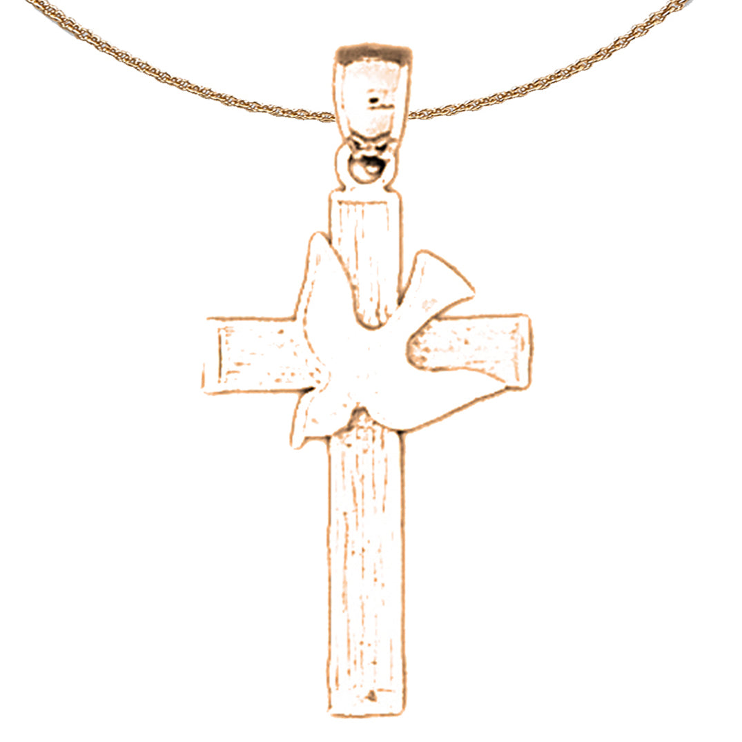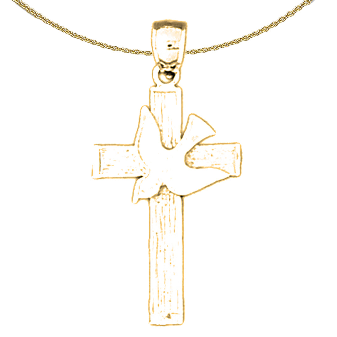 14K or 18K Gold Dove and Cross Pendant