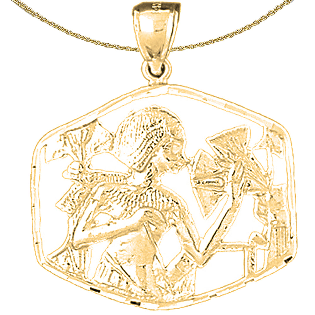 This gorgeous 10K, 14K or 18K gold egyptian pendant. This 10K, 14K or 18K gold pendant measures 32 mm in length by 28 mm in width. Measurement includes bale. JewelsObsession creates all gold jewelry in our state of the art manufacturing facility.