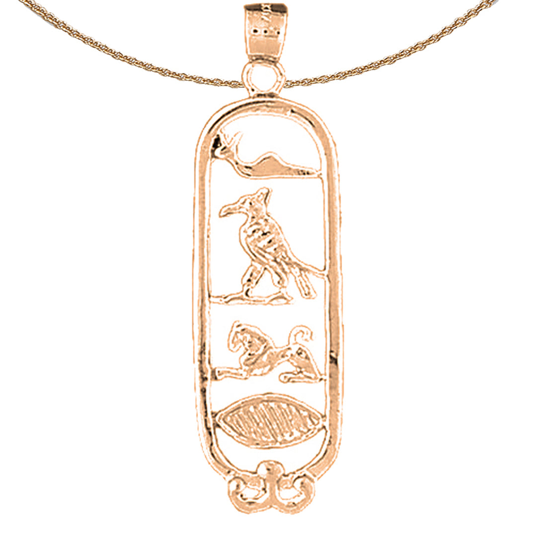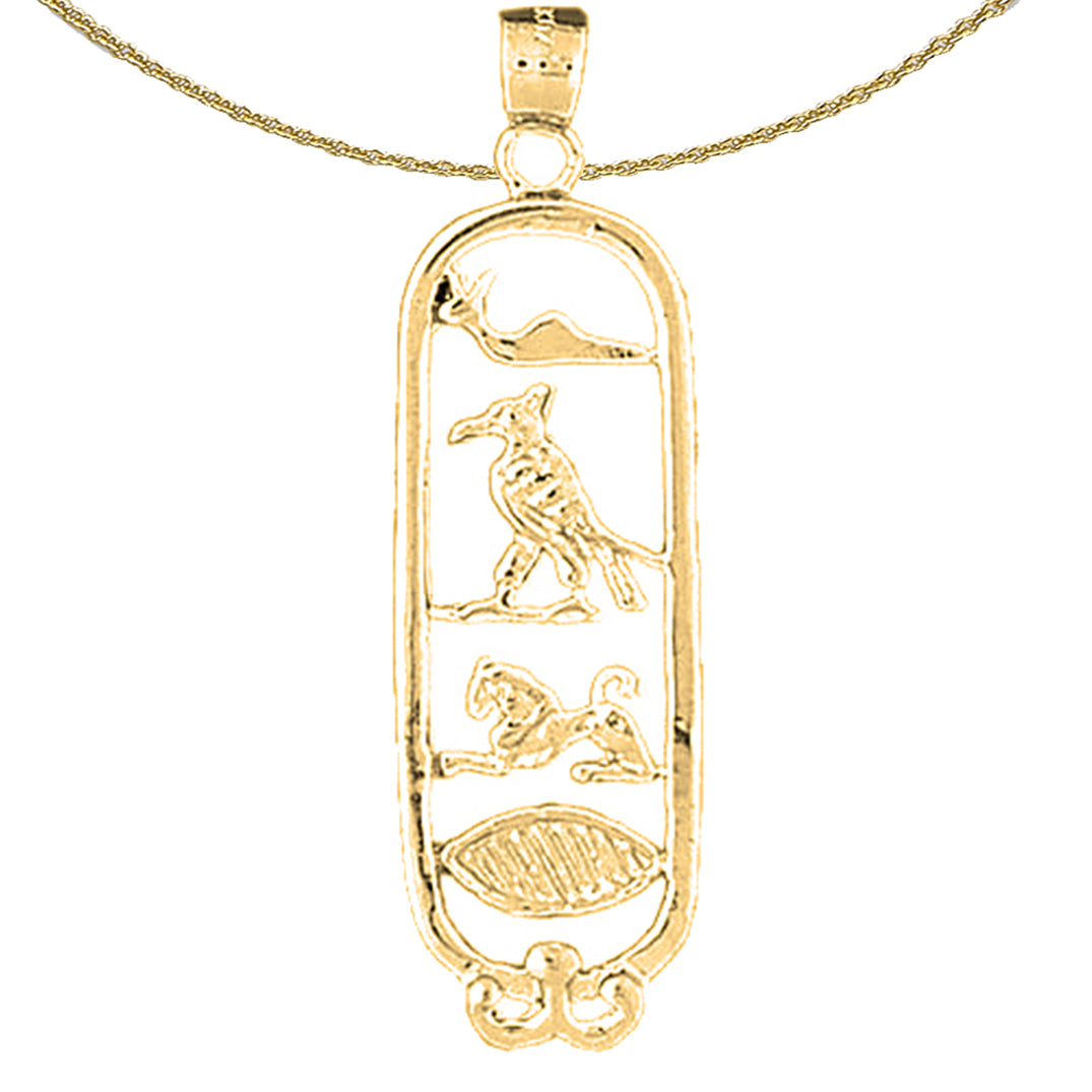 This is a beautiful 10K, 14K or 18K gold egyptian pendant. This 10K, 14K or 18K gold pendant measures 44 mm in length by 13 mm in width. Measurement includes bale. JewelsObsession creates all gold jewelry in our state of the art manufacturing facility.