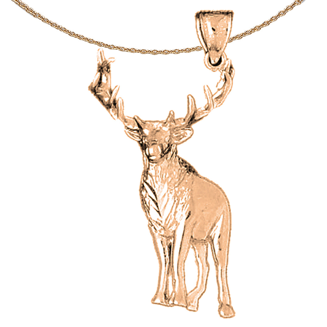 This is a stunning 10K, 14K or 18K gold elk pendant. This 10K, 14K or 18K gold pendant measures 44 mm in length by 21 mm in width. Measurement includes bale. JewelsObsession creates all gold jewelry in our state of the art manufacturing facility.