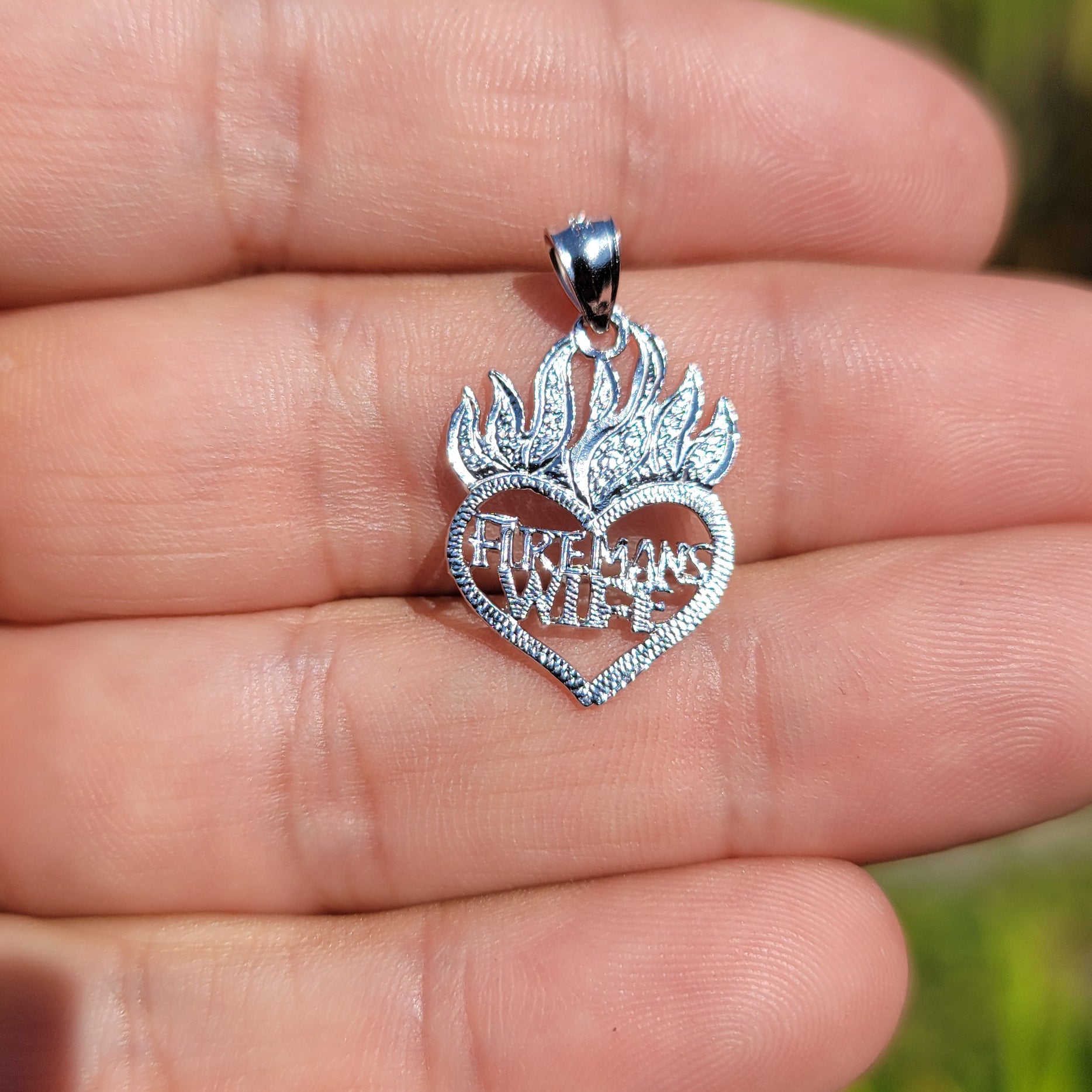 This is a beautiful 14K or 18K gold fireman's wife pendant. This 14K or 18K gold pendant measures in length by in width. Measurement includes bale. JewelsObsession creates all gold jewelry in our state of the art manufacturing facility.